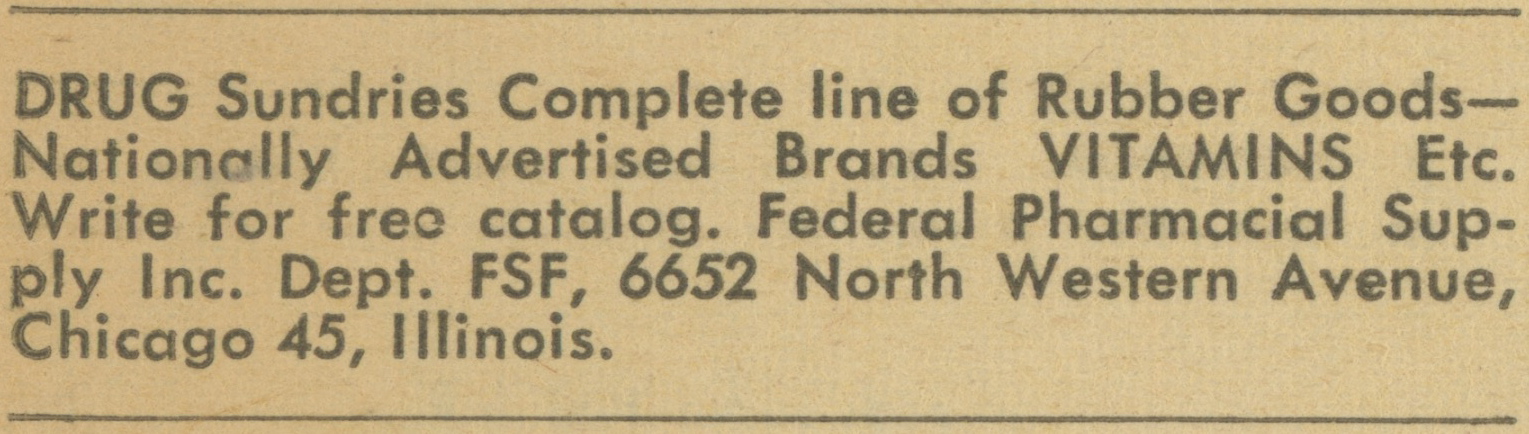 5 Comments on “Classified ads for drugs, prophylactics, and birth control literature”