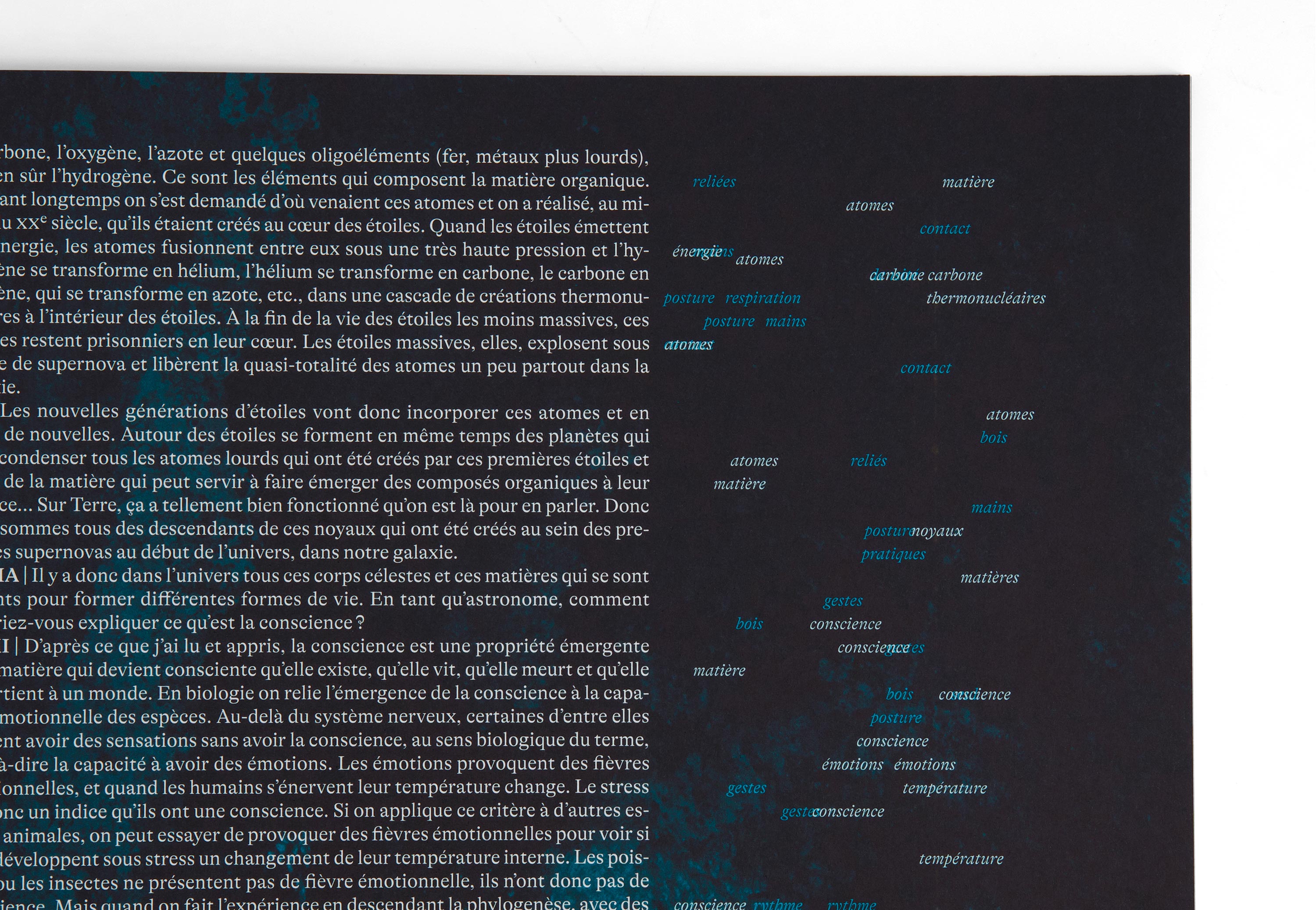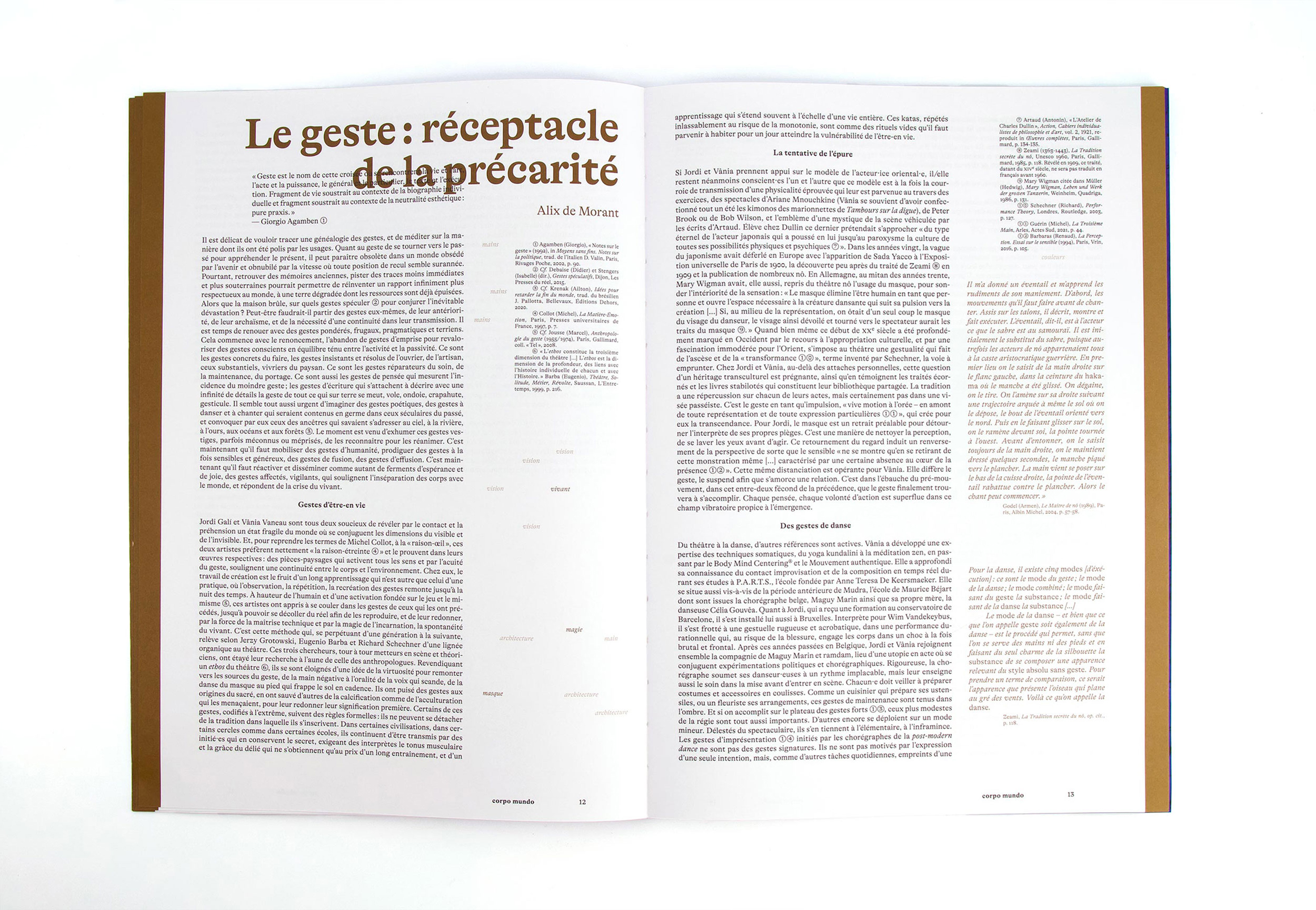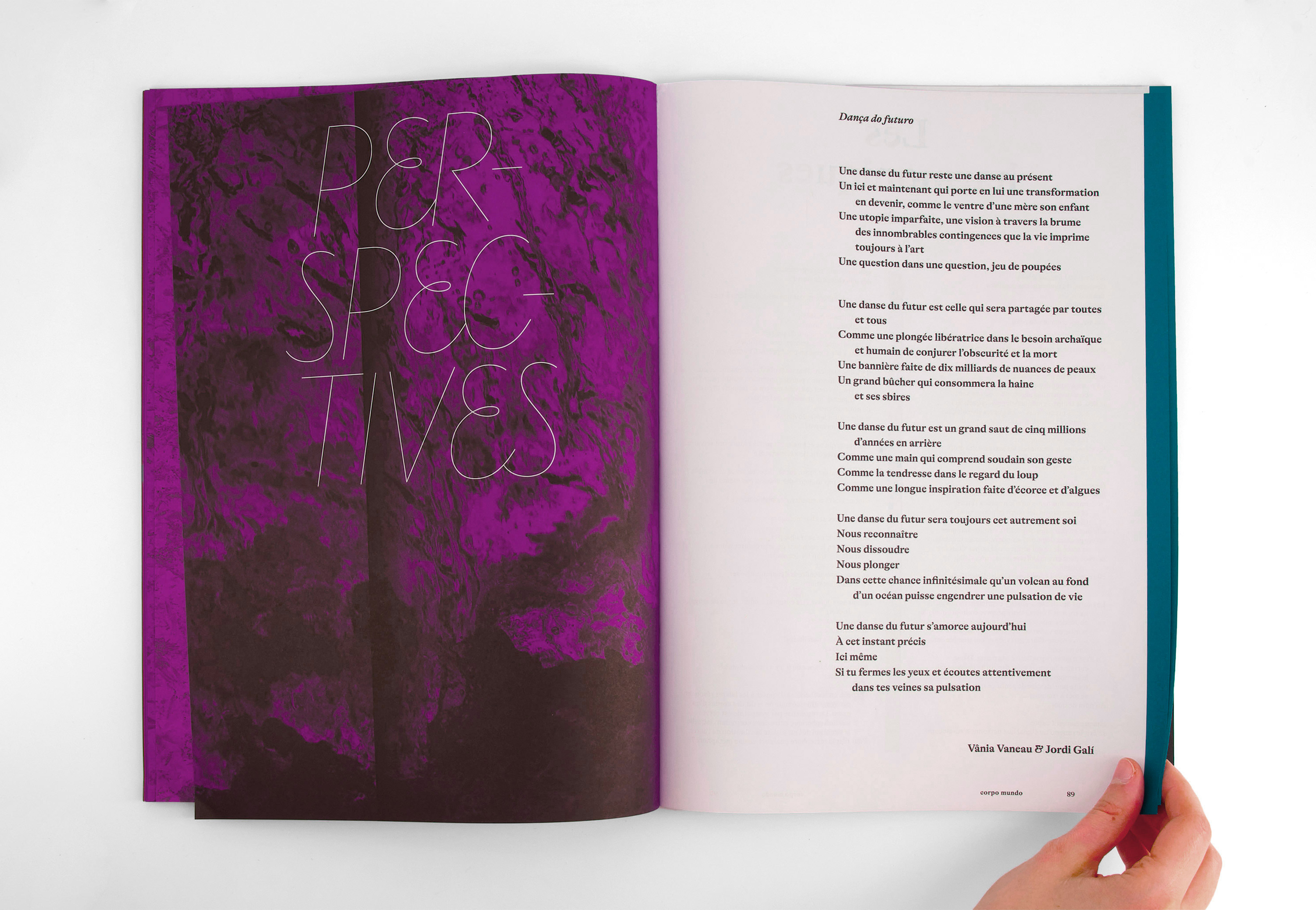 Each chapter is printed on a different paper with a different ink. Initiated and published by Arrangement Provisoire (lead by editors / choregraphers Jordi Galí & Vânia Vaneau), measuring 23×33 cm, 104 pages.