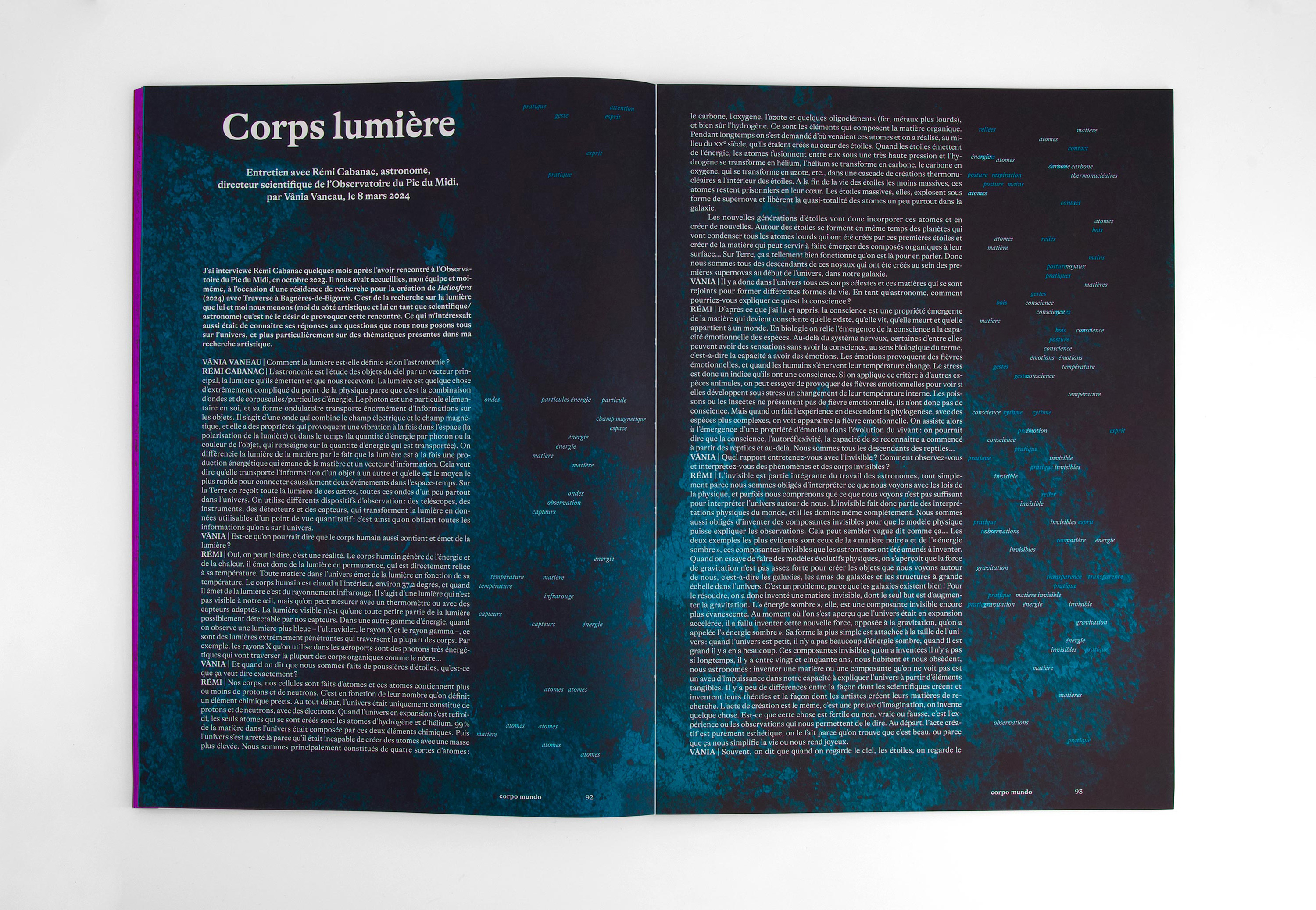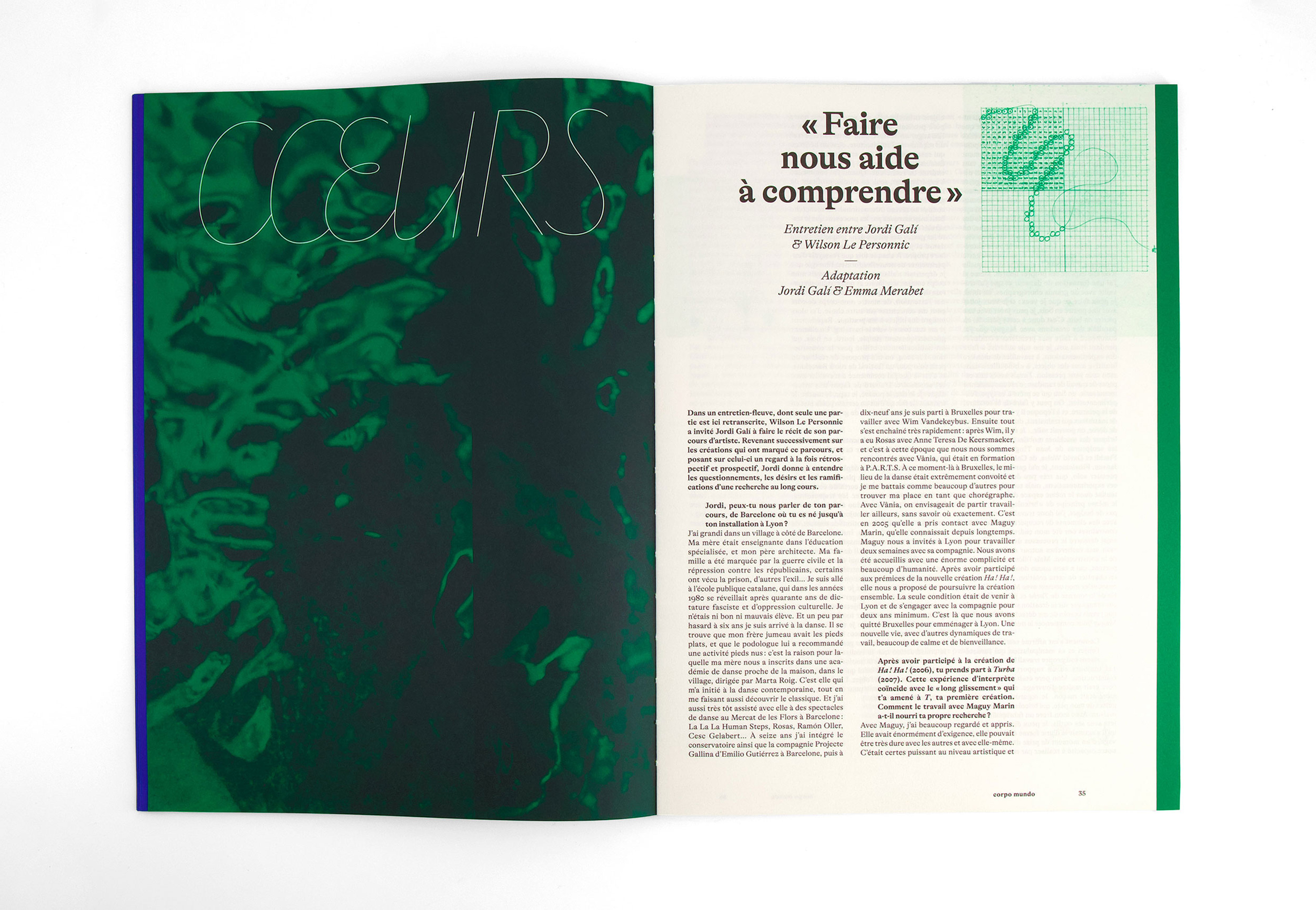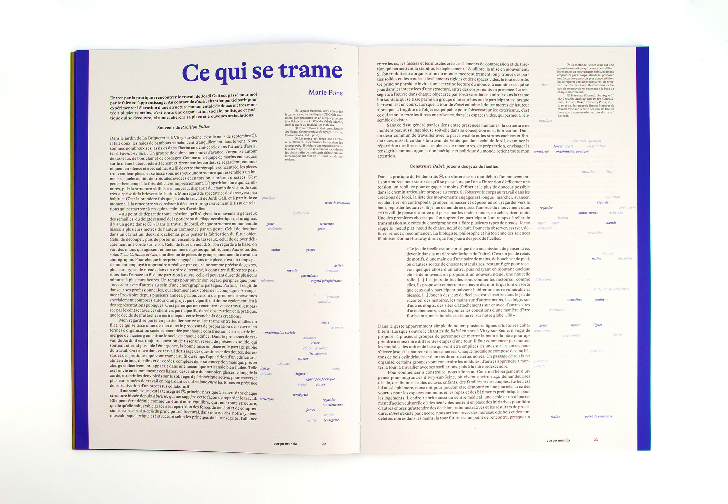 Each chapter is printed on a different paper with a different ink. Initiated and published by Arrangement Provisoire (lead by editors / choregraphers Jordi Galí & Vânia Vaneau), measuring 23×33 cm, 104 pages.