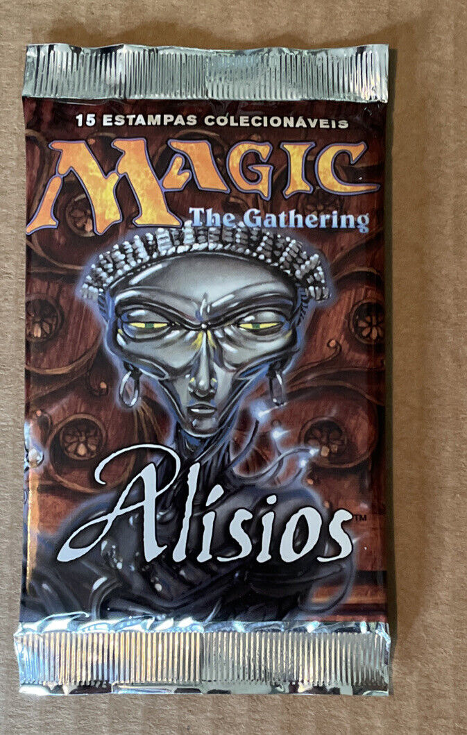 Shown here are a variety of card packs, boxes, and print advertisements. Above you will see two packs of magic cards.
