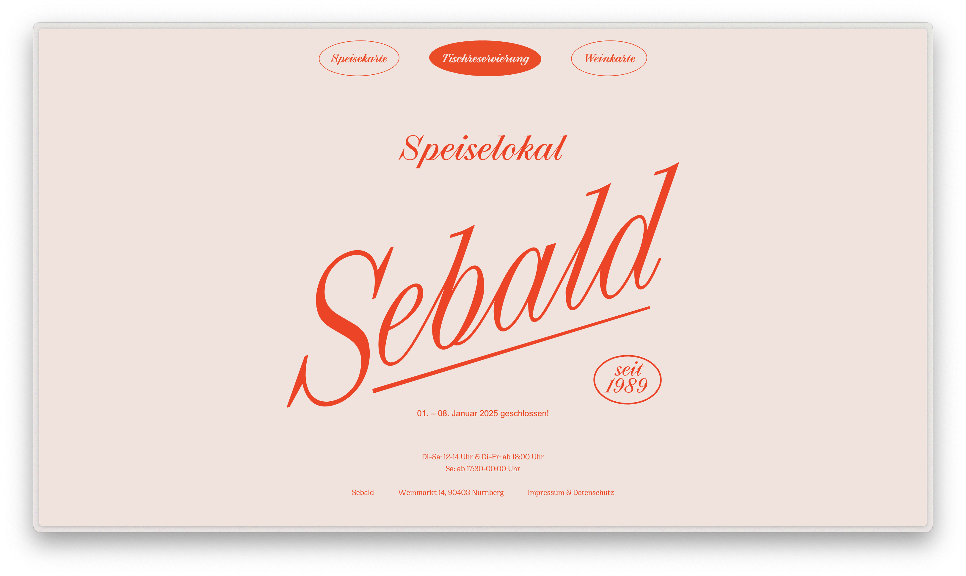 Sebald is a newly opened restaurant located in Nürnberg, Germany. The design team used Cirka alongside Selva Script as the main typefaces for their identity. You can find them used on their website, their Instagram communication, as well as on their menus and napkins.