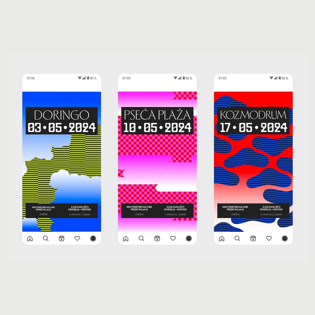 Rich, saturated colors and rhythmic compositions evoke both nostalgia and modernity, aligning perfectly with the eclectic spirit of Žarište. The design serves not only as a visual statement but also as an integral part of the event’s identity.