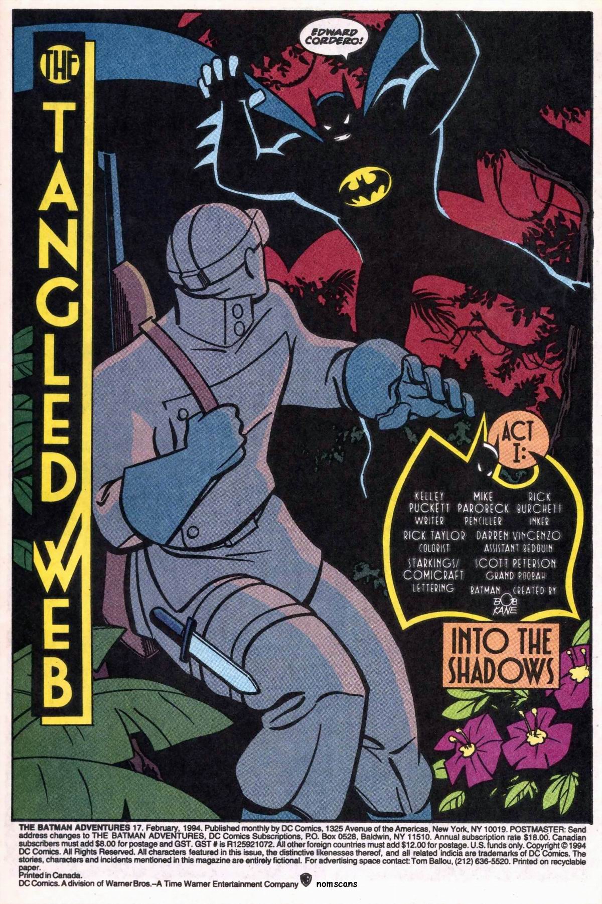 The Batman Adventures was a comic book published by DC Comics from 1992 to 1995, as a tie-in to the cartoon Batman: The Animated Series. The first 16 issues were lettered by Tim Harkins, but starting from issue 17 (dated February 1994, but actually on sale in January), lettering duties were taken over by Richard Starkings of Comicraft.
