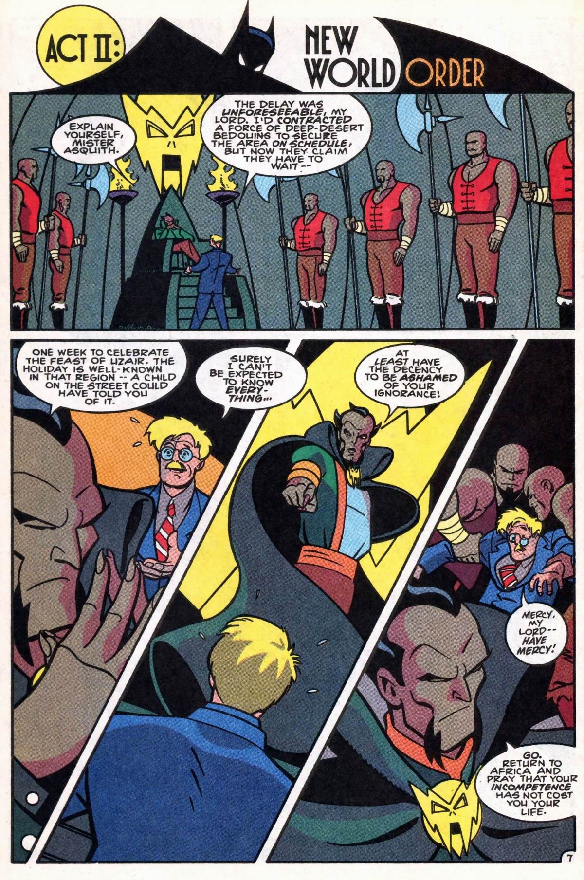 Dialogue and sound effects are hand-lettered. Titles and credits are in the Lite and Dark weights of Dutch Courage, which were created by Comicraft for The Batman Adventures. Dutch Courage appears to have been inspired by Plaza, which was used for the logo of Batman: The Animated Series.