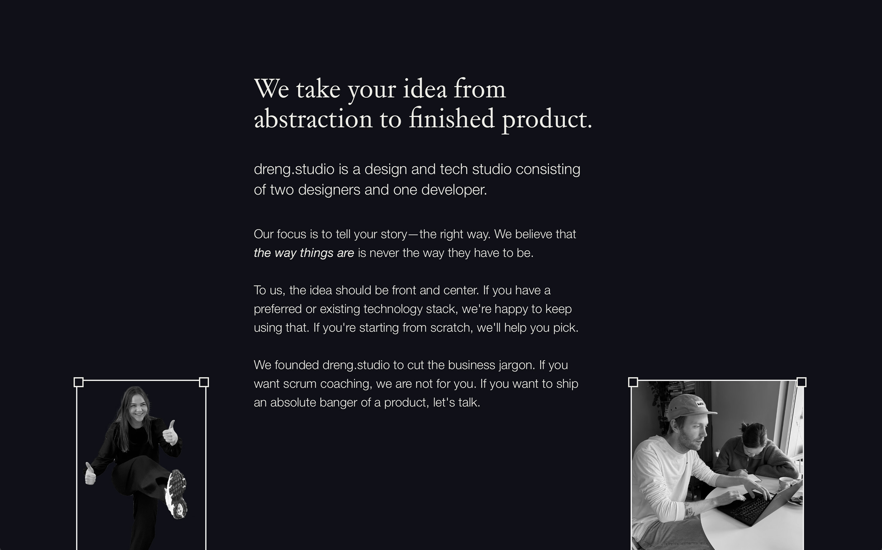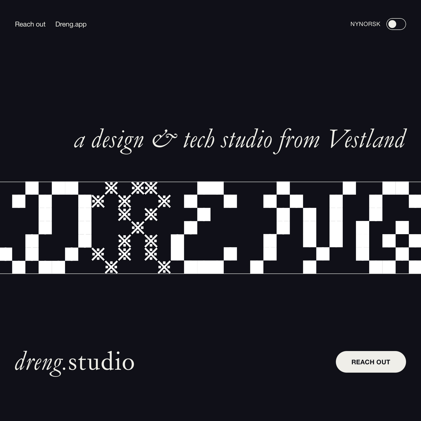 Dreng Studio is a design and tech studio based in the small town Skei in Jølster, on the west coast of Norway. They recently redesigned their website using Skriftkompani’s Store Norske Gangster in roman and italic, supported by Helvetica.