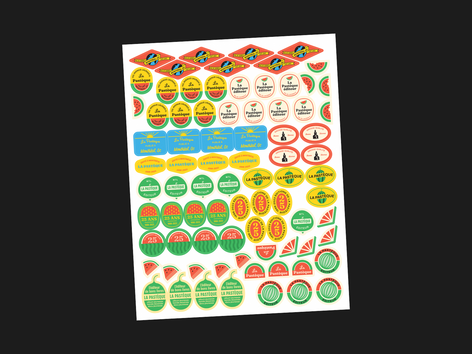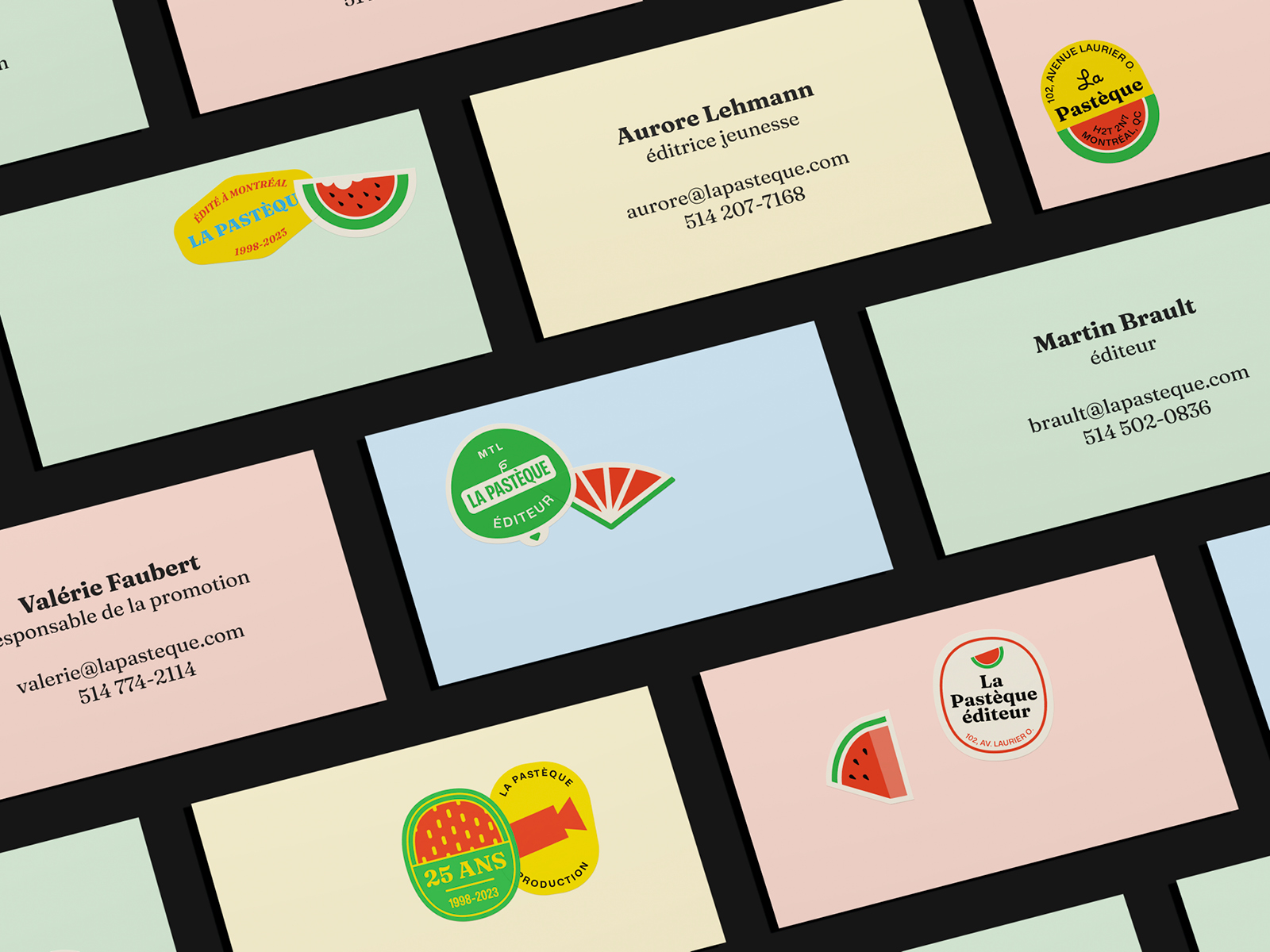 A redesigned identity for the 25th anniversary of publisher Éditions de La Pastèque. The developed identity is playful and varied, to represent the diversity of the publisher’s offering, which includes children’s books as well as non-fiction for teenagers and comics for adults.