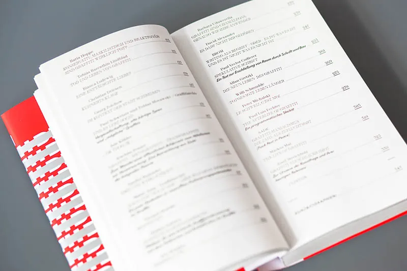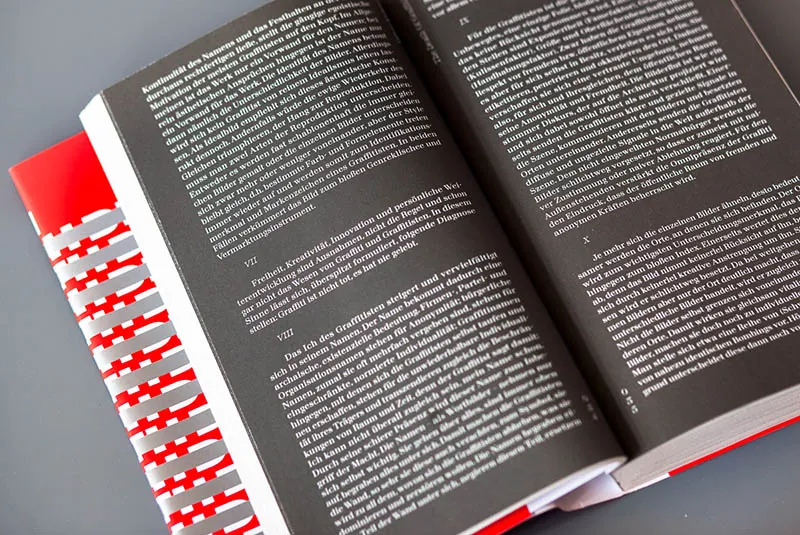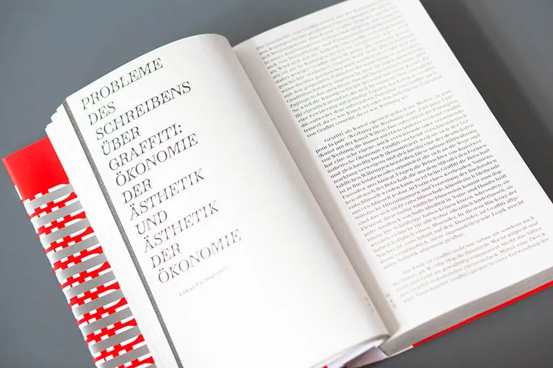 Constructed around a polemical text on the practice of graffiti, the book gathers several theoretical essays on the discipline and its history. The cover, printed in red and metallic chrome, is a play on the time-honoured practice of covering existing graffiti (also called “toying”) and echoes the way the texts all respond to the first document. The composition takes up all the space available on the book cover, as it would on a wall.