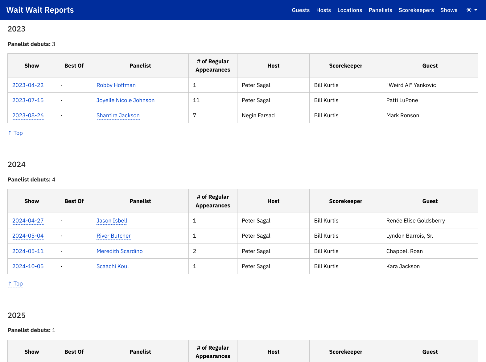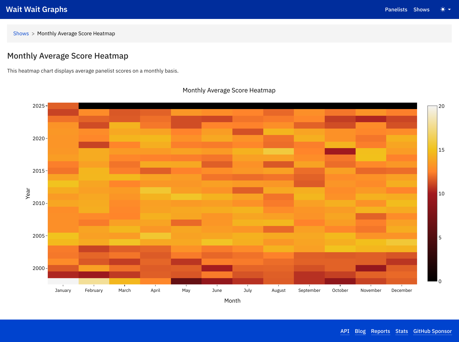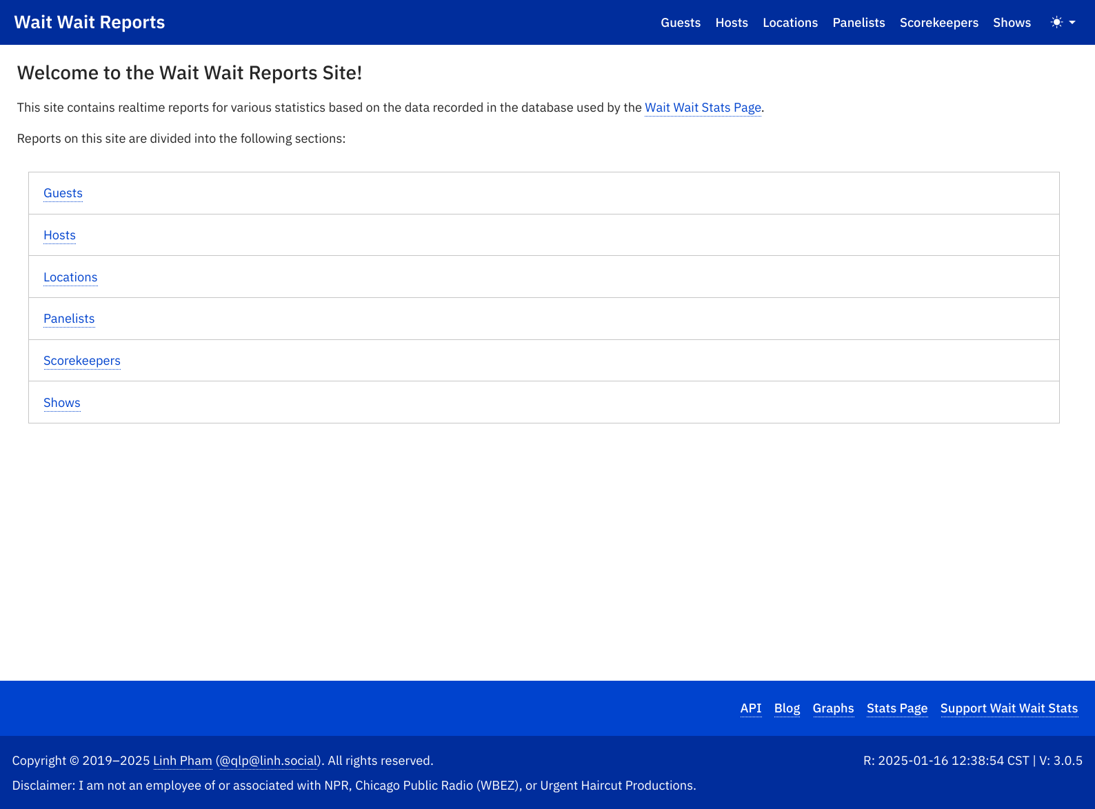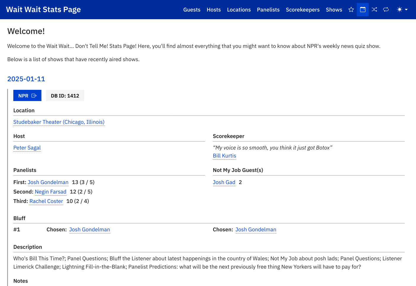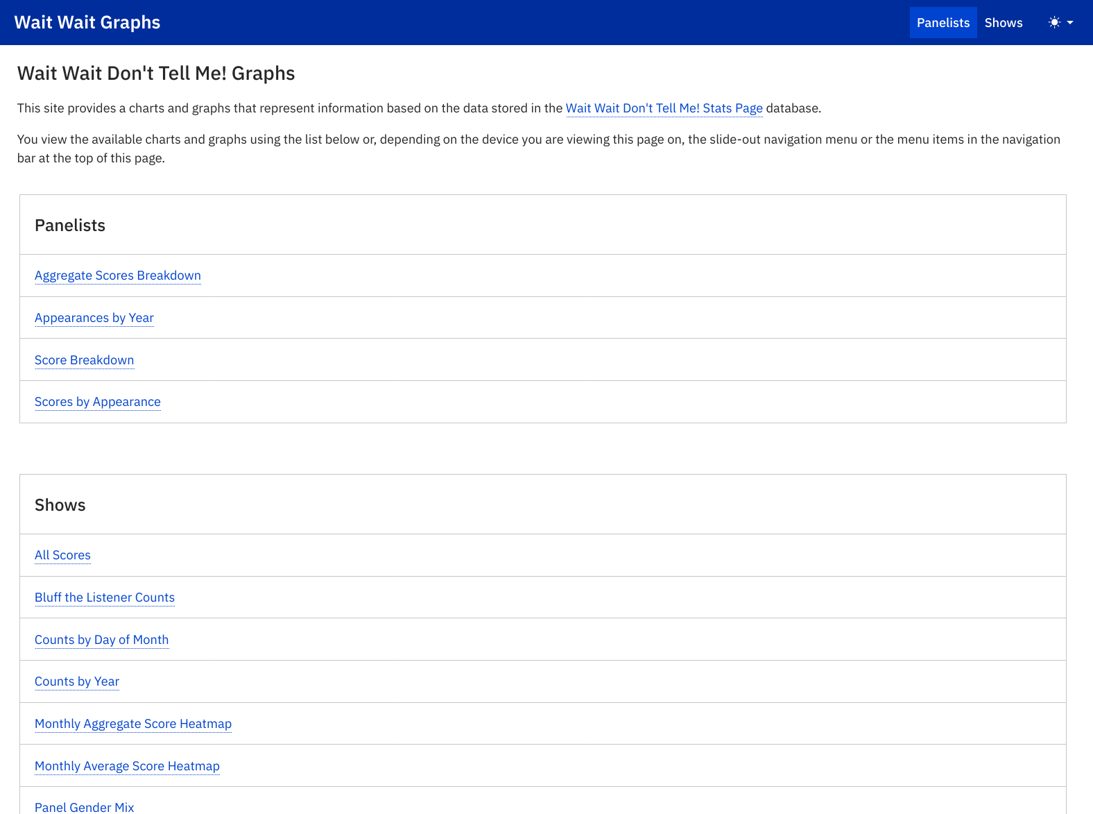 The Wait Wait Stats Project provides information about the news radio panel show Wait Wait… Don’t Tell Me! on NPR. It consists of the Stats Page, Graphs Site and Reports Site, use IBM Plex Sans due to the clean, legible, and data-focused needs for the sites. IBM Plex Sans has unambiguous characters (such as the number 1, a lowercase l, and an uppercase I) which is important for a site that has higher information density conveyed via text.