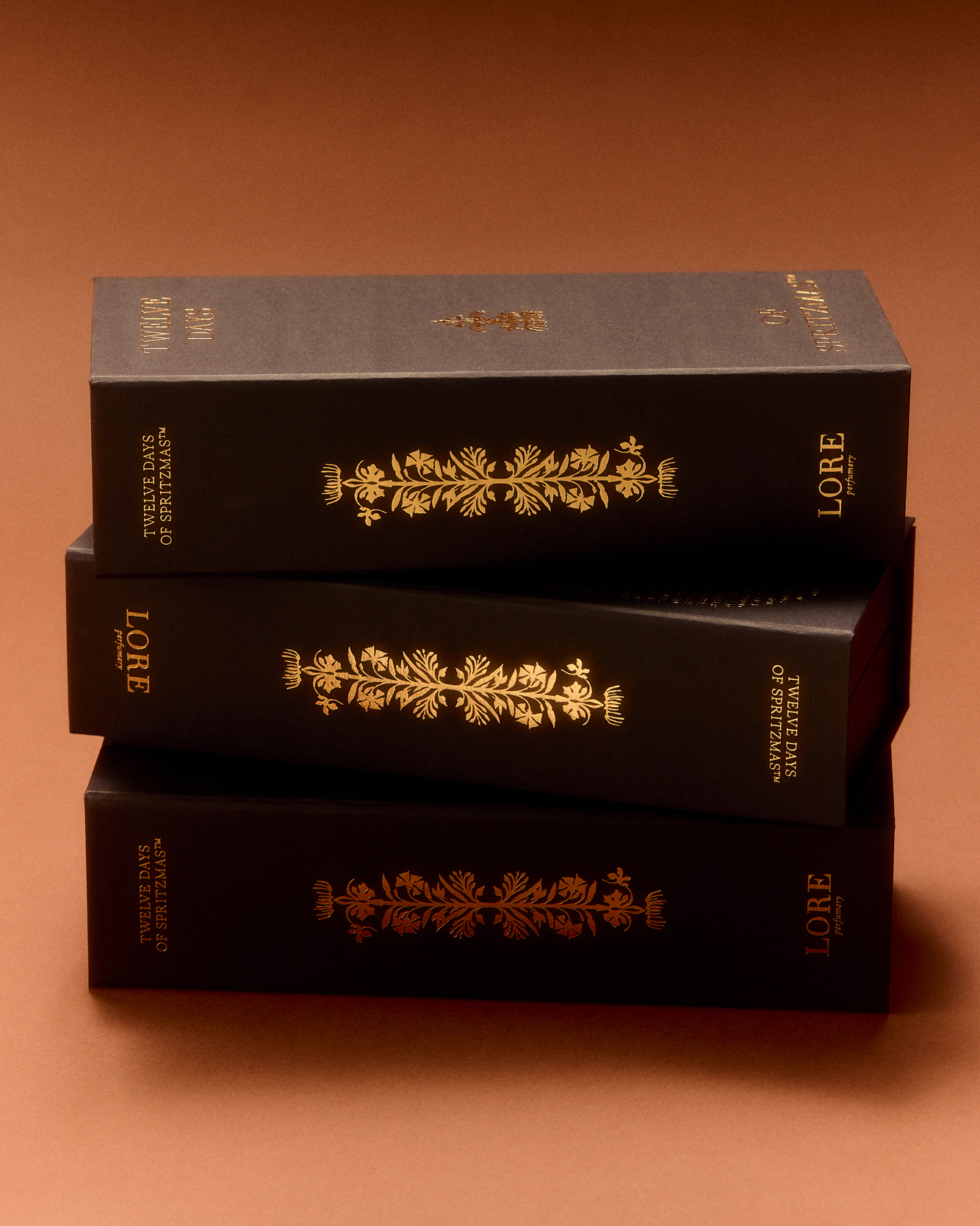 Design and concept by AKLR for Lore Perfumery, with specialist production by Work Works and photography by Griffin Simm. The typeface is Romie by Margot Lévêque.