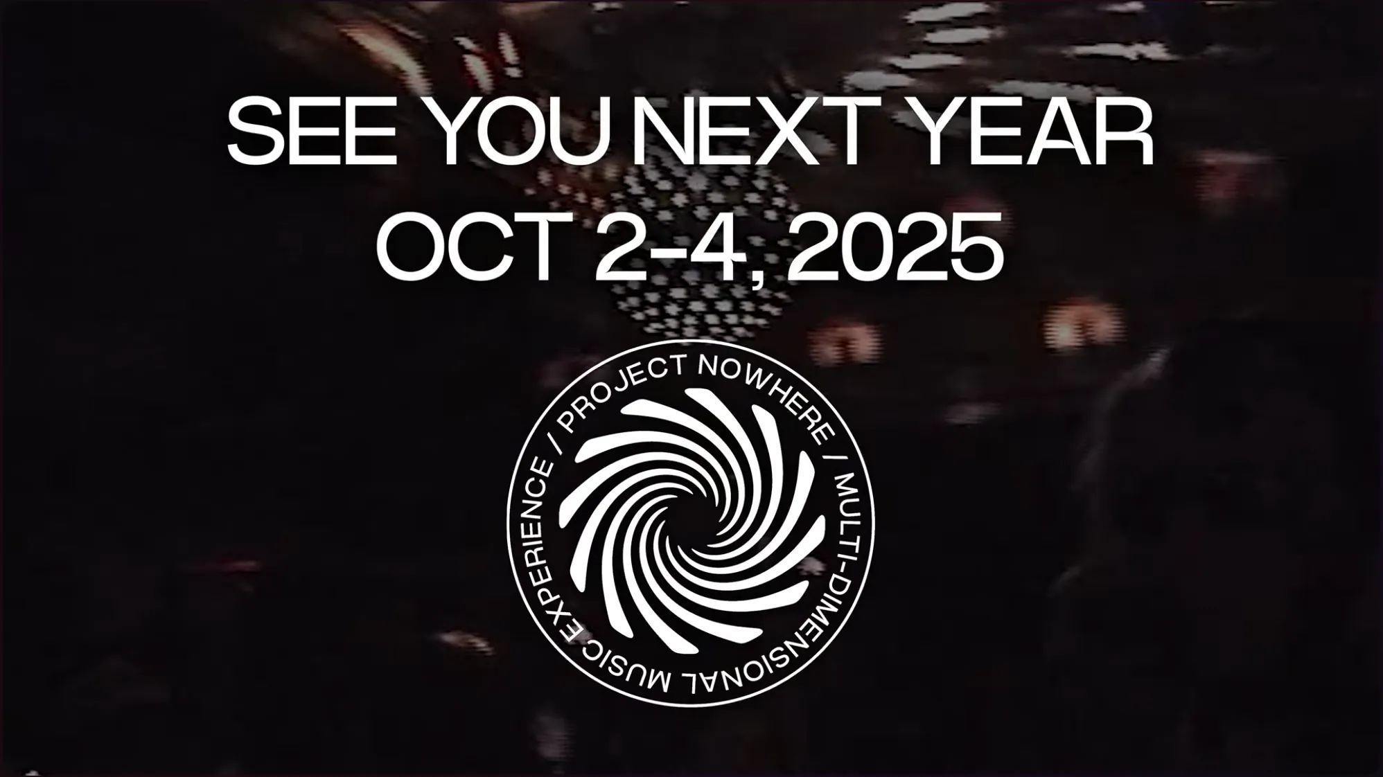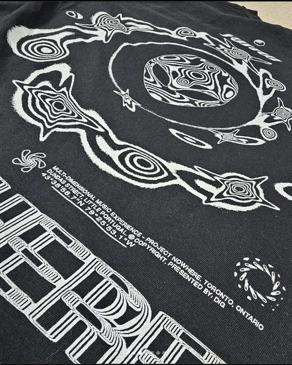 Project Nowhere is a multi-dimensional music experience. First organized in 2023, the second edition took place in October 2024 in Toronto, Canada. The visual identity by DIG Universe uses Power Grotesk alongside what looks like a bold Helvetica with blur effect and squeezed letterforms.