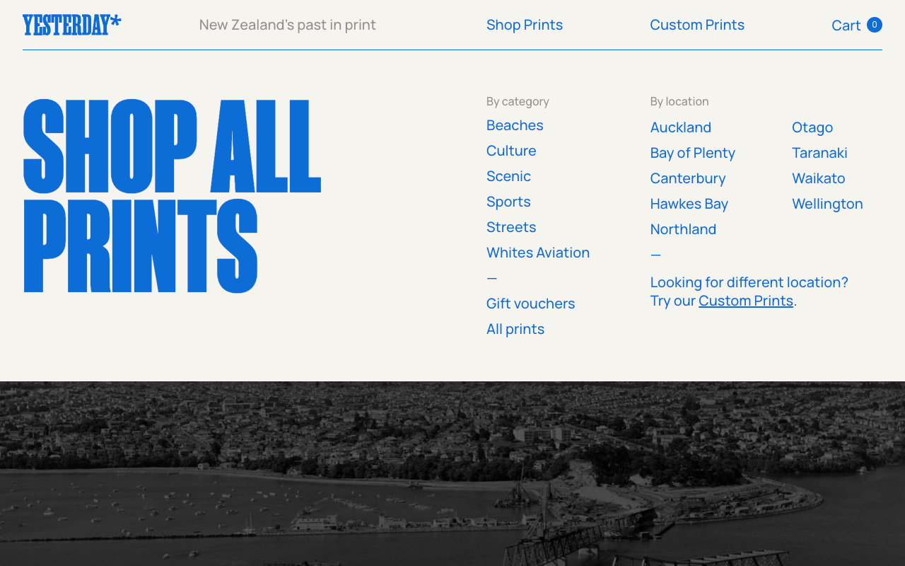 Yesterday* Contributed by Ryan Overeem on Feb 1st, 2025. Artwork published in January 2025. Source: www.ystrdy.nz @ystrdy.nz. Homepage. See ystrdy.nz for image attributions. Yesterday* is a curated collection of immersive large-scale prints from the photographic archives of New Zealand. We use a combination of Mānuka Black and Mānuka Slab by Klim Type Foundry as our headline fonts. Mānuka Slab is primary used for product names and locations. Mikhail Sharanda’s Manrope is used for UI and information copy. Source: www.ystrdy.nz @ystrdy.nz. Category carousel. See ystrdy.nz for image attributions. Source: www.ystrdy.nz @ystrdy.nz. Navigation. See ystrdy.nz for image attributions. Source: www.ystrdy.nz @ystrdy.nz. Product page. See ystrdy.nz for image attributions. Source: www.ystrdy.nz @ystrdy.nz. Related content. See ystrdy.nz for image attributions. Source: www.ystrdy.nz @ystrdy.nz. About us page Source: www.ystrdy.nz @ystrdy.nz. The asterisk in the logo acknowledges the artists and archives who inspired us to start Yesterday*. Typefaces More about MānukaGet MānukaMore about Mānuka SlabGet Mānuka SlabMore about ManropeGet Manrope Formats Web (5717) Branding/Identity (8612) Topics Retail/Shopping (1131) Art (4781) Local (1626) Designers/Agencies Ryan Overeem (1) Tagged withNew Zealand (19)local history (93)photography (992)websites (3656)online shopping (397)typeface combinations (4028)type series: sans+serif (388)big type (1741)type on an image (155)asterisk (*) (240)blue (926)navigation (15)menus (UI) (583)starbursts (172)type on an angle (1361)local type (274)all caps (7802) Artwork location New Zealand (188) Auckland (53) In SetsWeb (Lucas Bevilaqua) (361)Open Source/Free Type (Lucas Bevilaqua) (204)meny (Emmylou Källblad) (5)portfolio (Henry Burgin) (10) Post a comment Name Email – will not be published Website Your response Submit Comment More Mānuka in use The Verge (2022 rebranding)2022Vox MediaContributed by Milos Mitrovic Staff Pick Zubaan rebrand (student project)2022Ariana GuptaContributed by Ariana Gupta Heimildin2023Jón Ingi StefánssonContributed by Production Type Staff Pick Sponsor More in Retail/Shopping Chris’ Webshop2013Christoffer SörensenContributed by Christoffer Sörensen Woohoo Wool2023Stroke and MarvelContributed by NaN Scott Miller2024Burak TığlıDeniz DamarParcour StudioContributed by Parcour Studio The Story of Our Friend, the Fat Facec. 1826Paul RandHerbert BayerBruno MunariContributed by Jennifer Kennard Blog More in Web Jacques Offenbach Jahr 20192019formduscheContributed by TypeType The New Editorial website2022UpstatementGhost NoteGodfrey Dadich PartnersContributed by Jon Lena Tervooren visual identity2024Lena TervoorenContributed by Markus Abts Le Fanfare identity2020Het Echte WerkBritt DuppenContributed by Britt Duppen Staff Pick More Fonts In Use Linn Konserven-Gläser invoice, 1935c. 1930Contributed by Florian Hardwig Staff Pick Austria (Österreichische Verkehrswerbung) Travel Posterc. 1930Joseph BinderContributed by Stephen Coles Staff Pick Maybourne Papersc. 2012Construct LondonContributed by Swiss Typefaces Staff Pick Machine-Age Exposition 1927 poster1927unknownContributed by Bryson Stohr Staff Pick