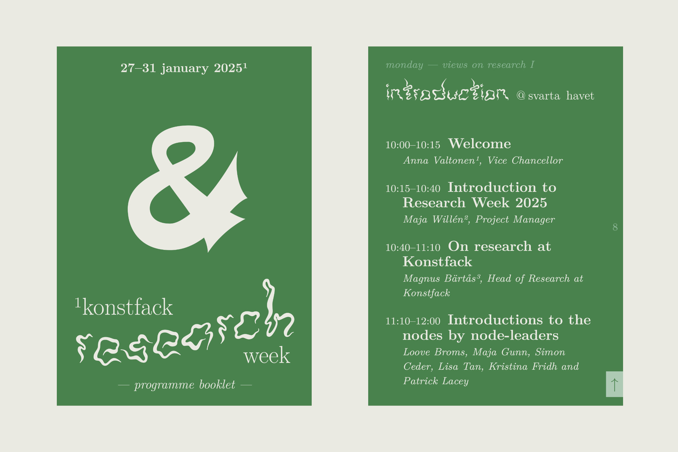 Graphic design for Konstfack Research Week 2025, which is hosted by Konstfack University of Arts, Crafts, and Design, Sweden’s largest art school. Research Week is a five-day event consisting of lectures, workshops and panels focused on artistic research. many events are open to the public.