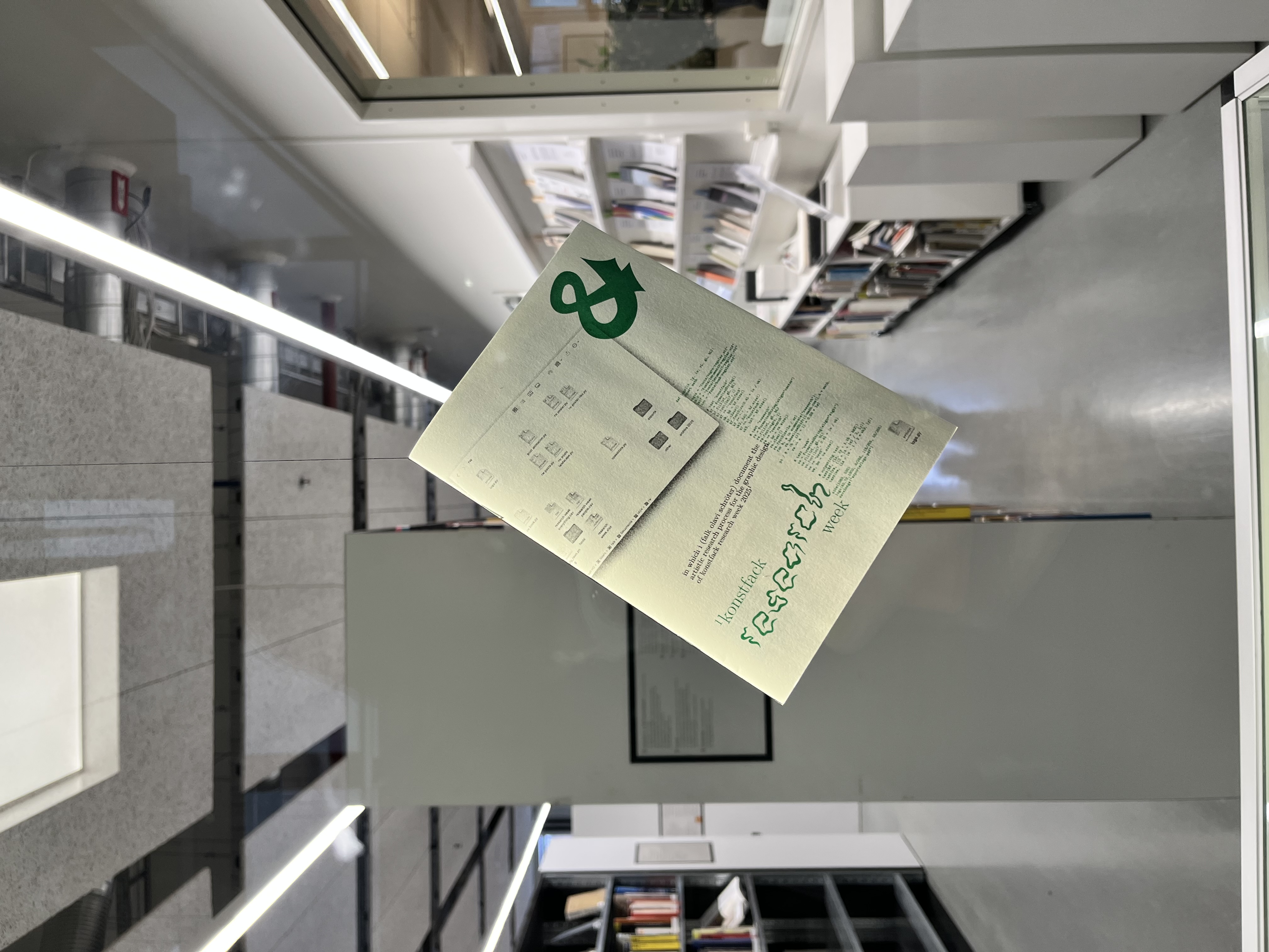 The logo and layout are fully coded in DrawBot and printed material is produced with Konstfack’s Risograph printer. Depending on whether the material is printed or digital, the colour combination is switched around.