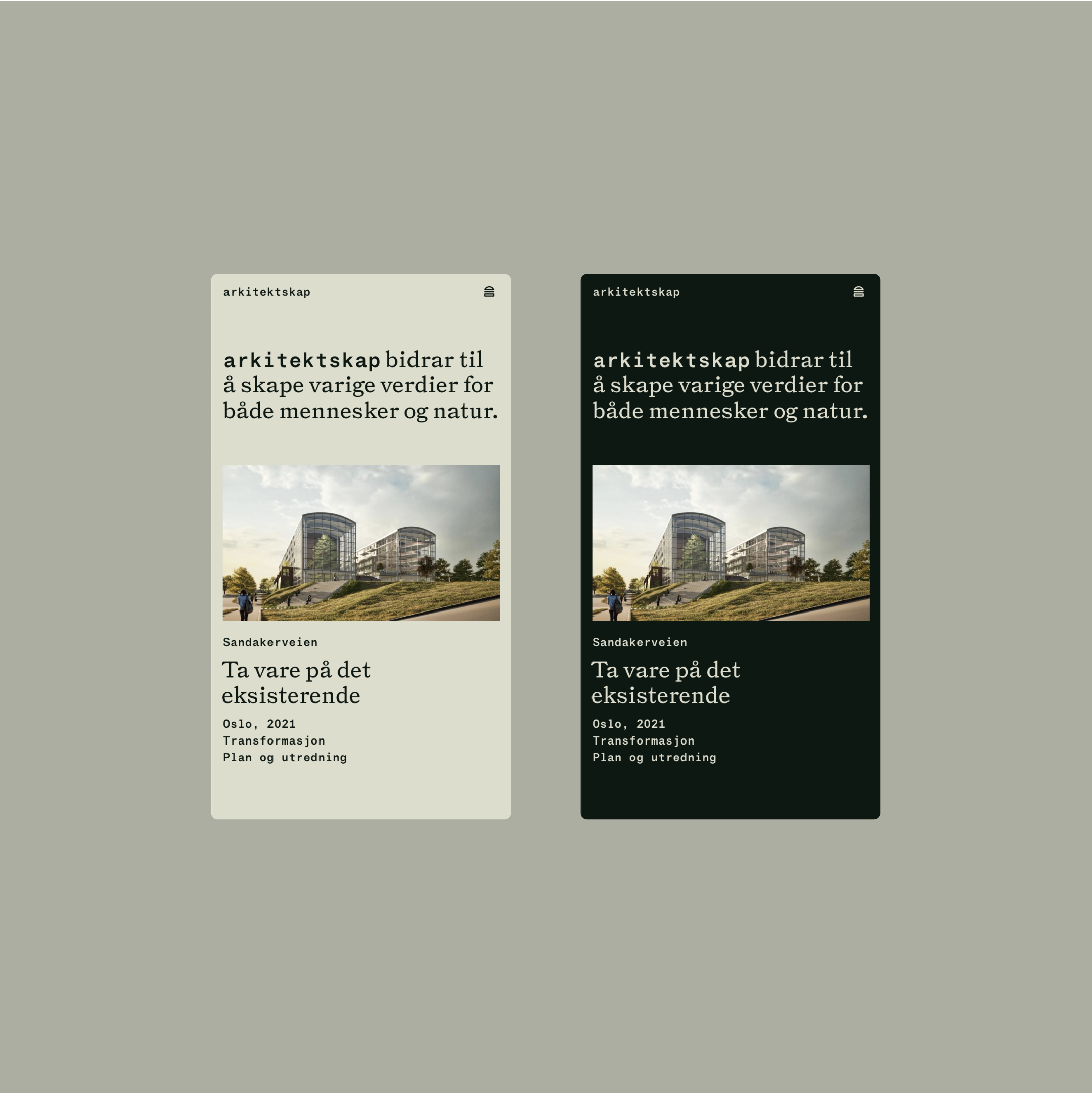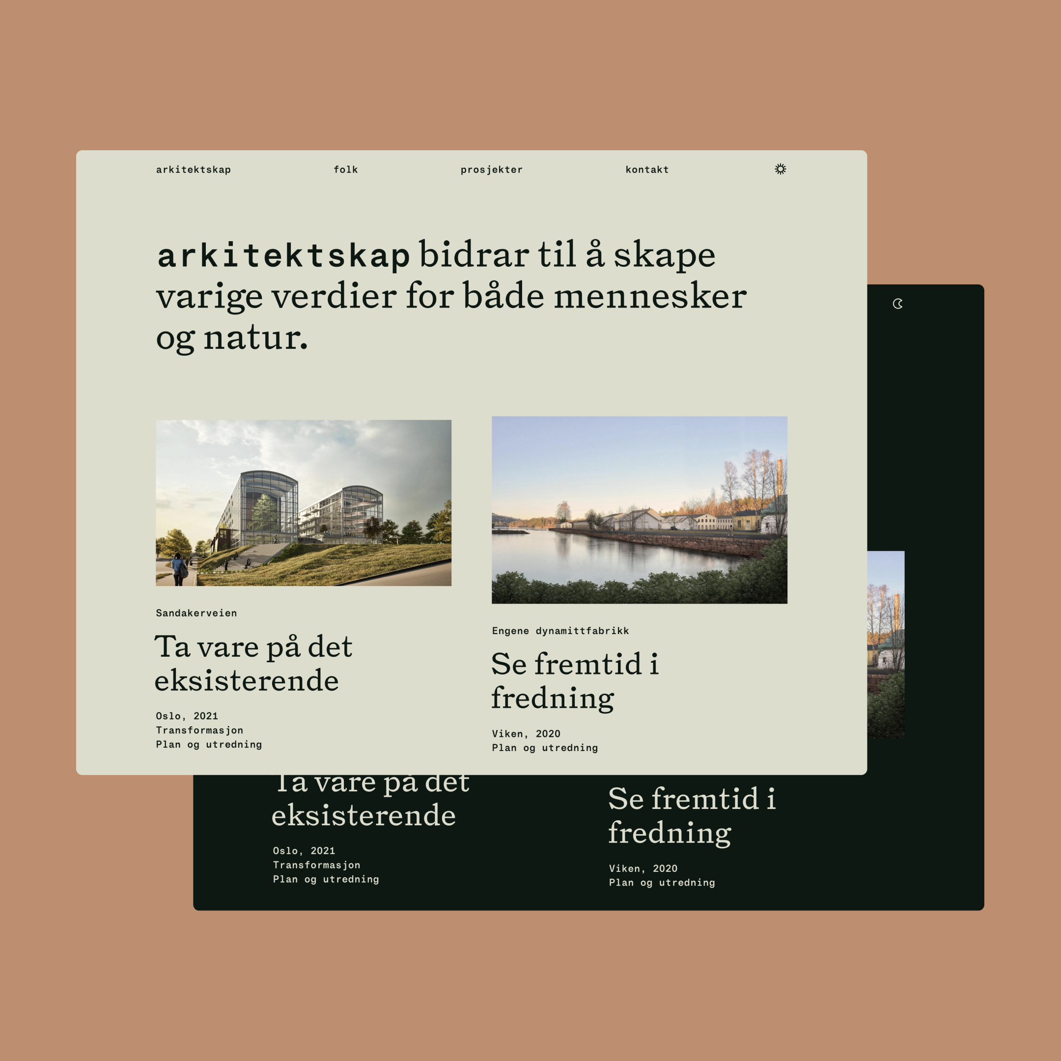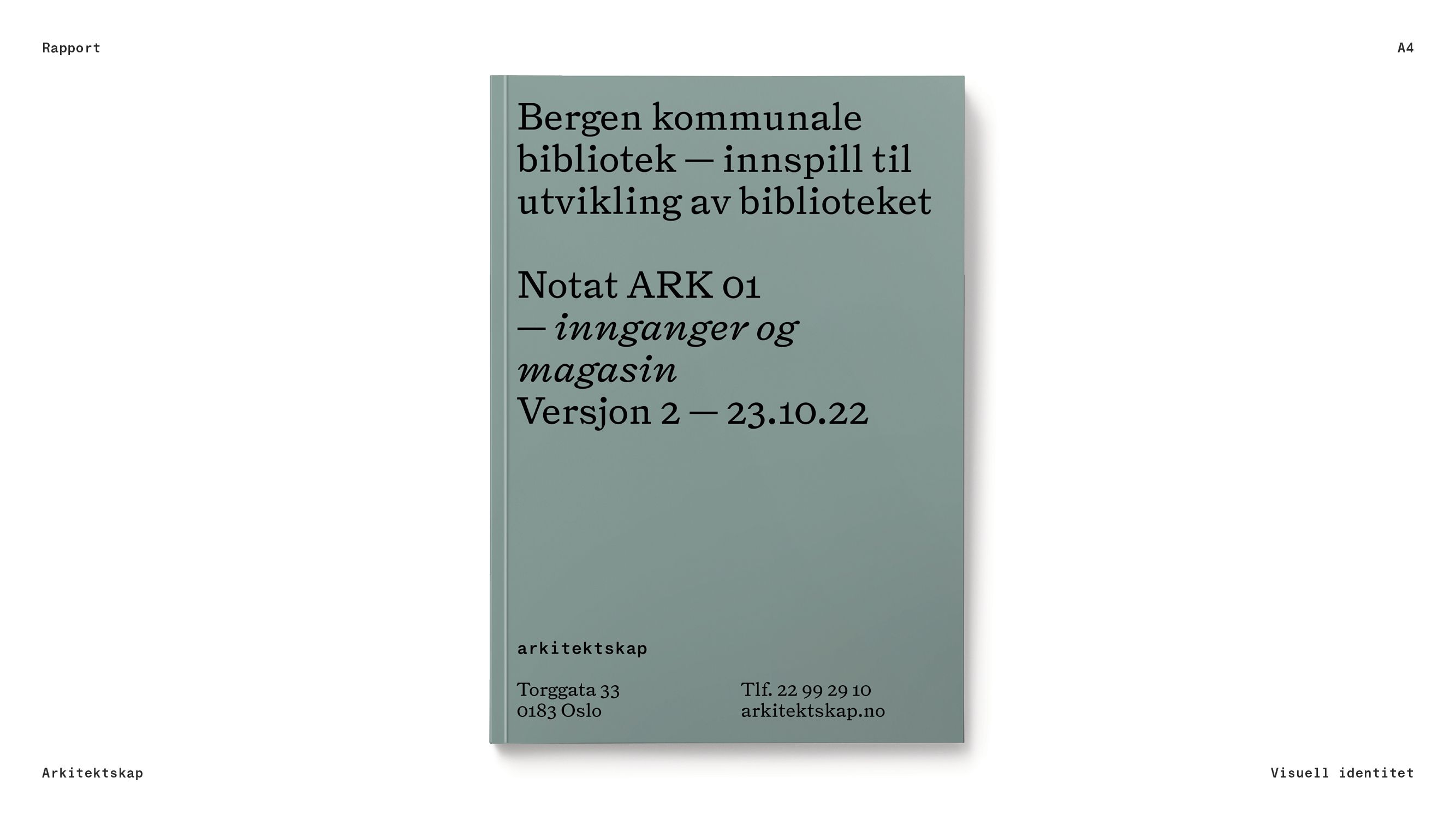 Identity for the Oslo-based architecture firm Arkitektskap. Design by Eivind Stoud Platou of Handverk, together with Elise Jakobsen of Jakobsen Frukt & Grønt and Petter Gulli of 12YEARS. The identity combines Triptych by The Pyte Foundry with STK Gerhard from Smuss Type Kiosk.