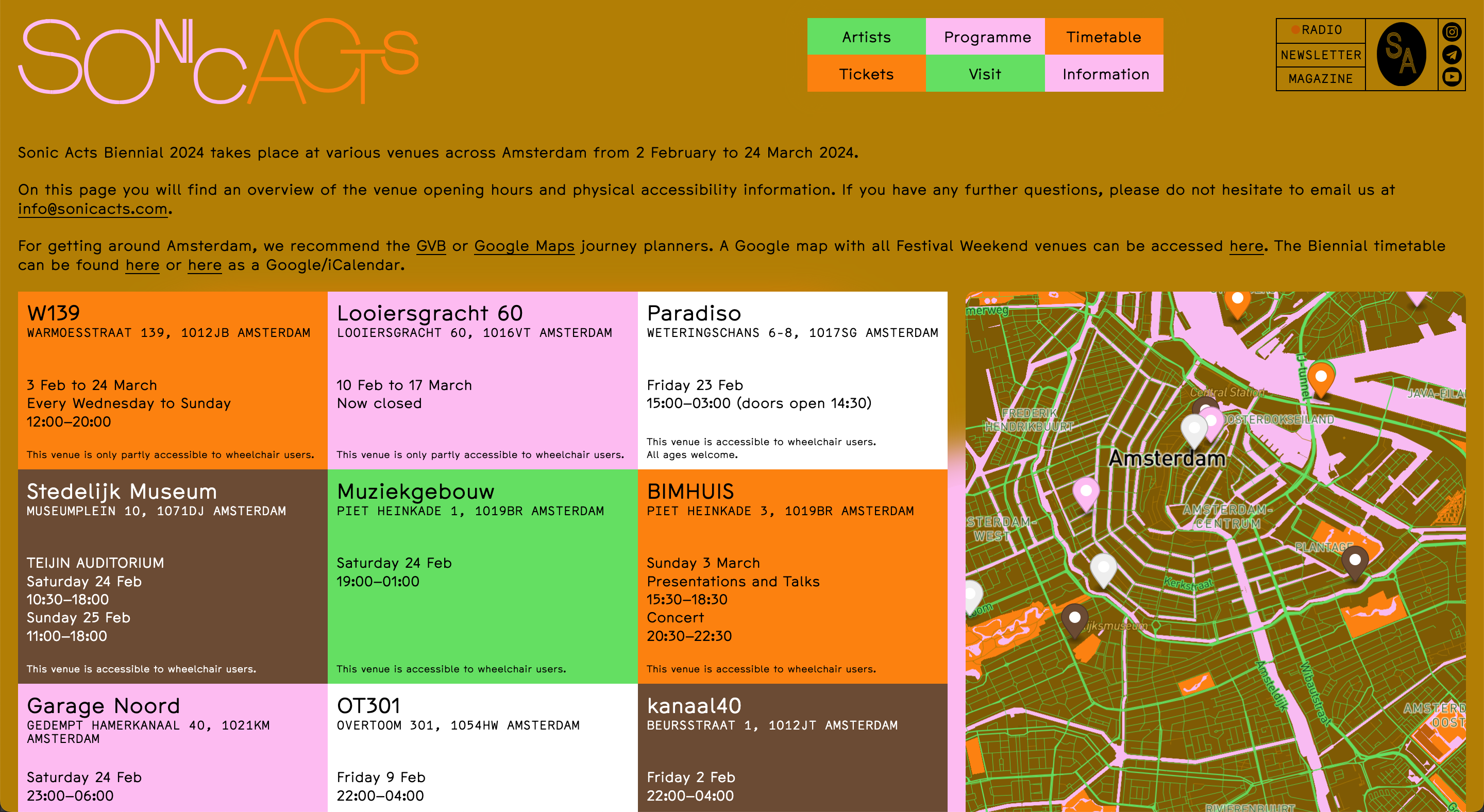 Sonic Acts is an interdisciplinary arts organization based in Amsterdam presenting new developments in electronic and digital art forms. Their biennial international festival is an art, theory and technology gathering motivated by changes in the ecological, political, technological and social landscape.