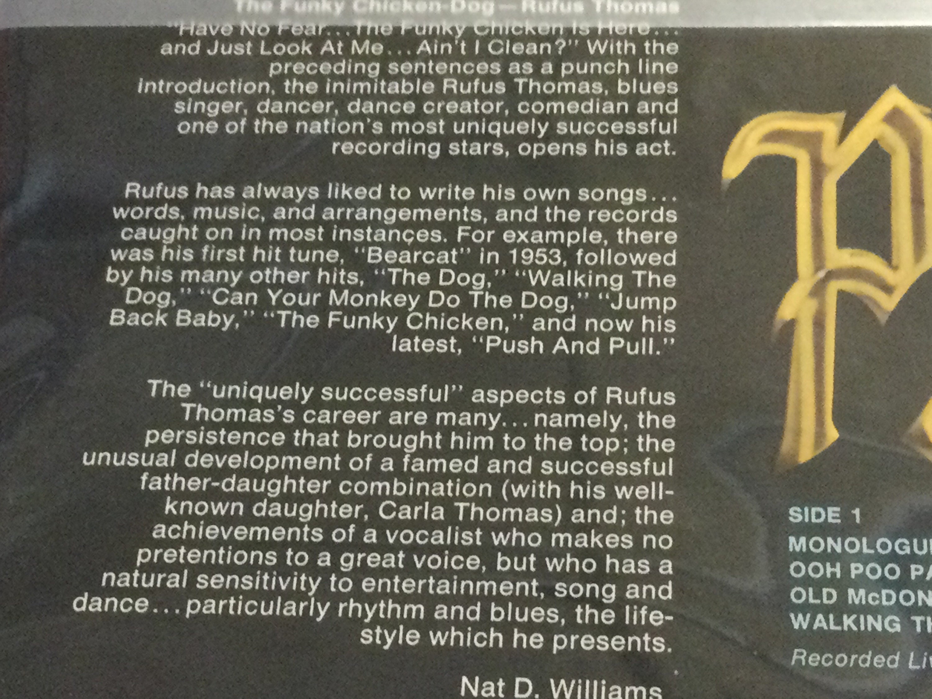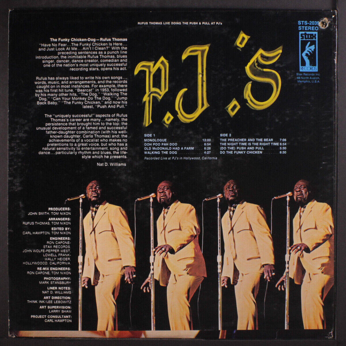 Rufus Thomas Live: Doing the Push & Pull at P.J.'s is the first live album by R&B/funk musician, WDIA radio DJ, and eternal teenager in spirit Rufus Thomas, released in 1970 on Stax Records. The cover was designed by Lee Lebowitz at Think Ink under the supervision of Larry Shaw, with photography by Memphis radio personality and photographer Mark Stansbury.