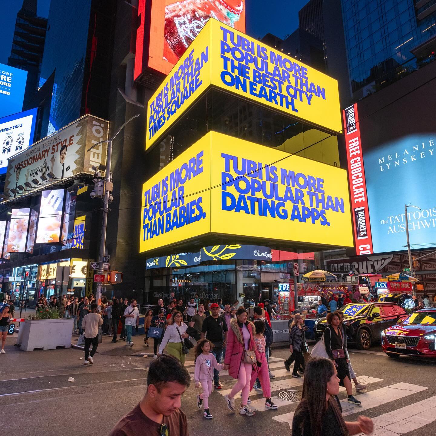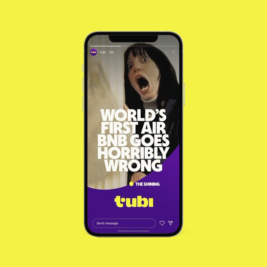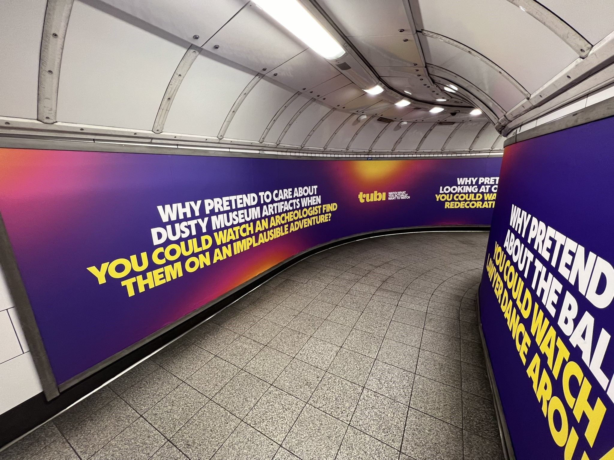 Working with Mark Butchko from Central Type, a Chicago type foundry, we tailored a confident typeface, Tubi Stans, to match the irreverent tone of voice that sets Tubi apart from competitors, with the name itself paying homage to the superfan culture that the brand embodies. Sprinkled across the typography, flipped glyphs and characters that subtly bend into the iconic Rabbit Hole shape help to convey playful oddity at every level of messaging.