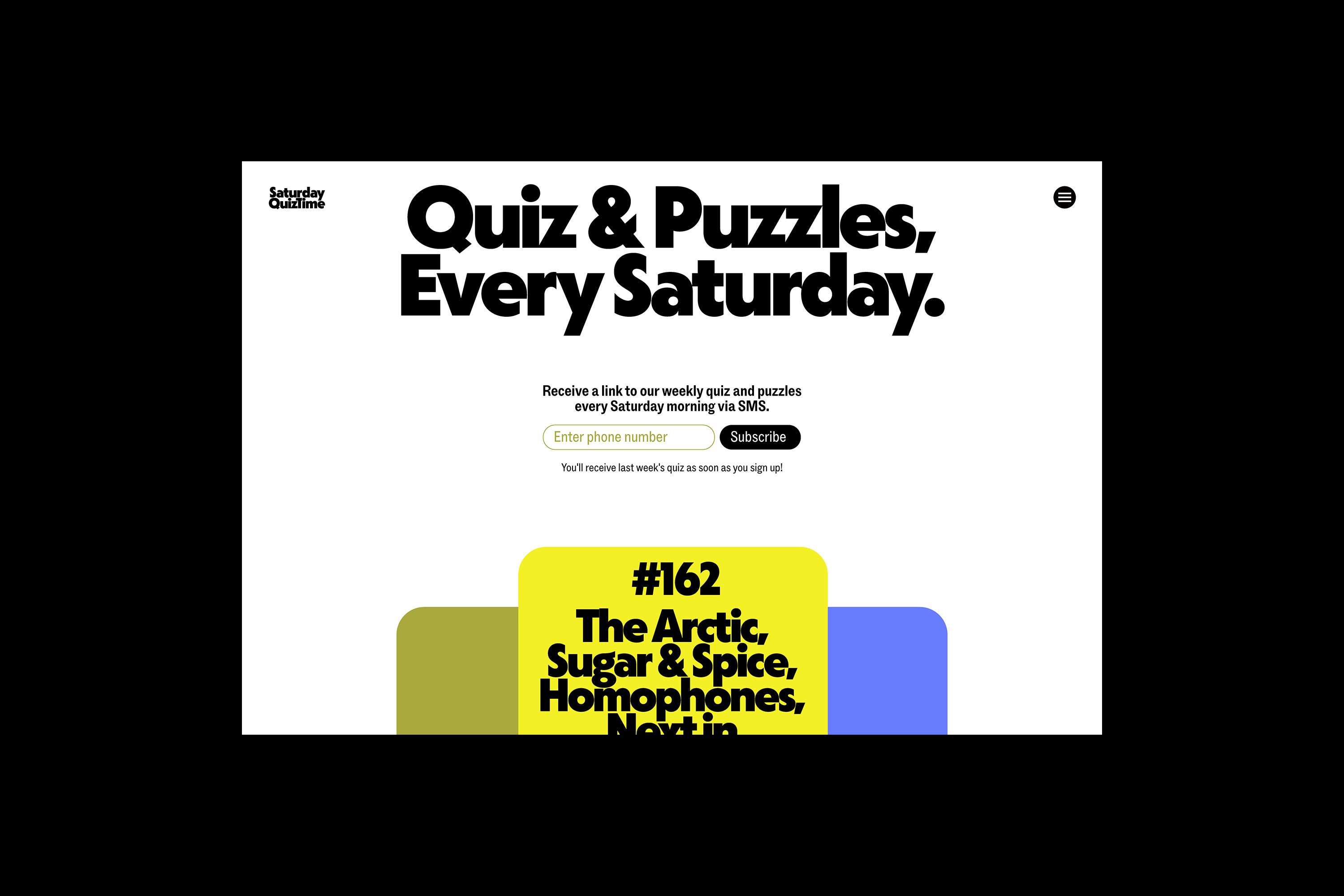 A bright, punchy and screen-friendly identity by Susu Studio for the best quiz and puzzle subscription in the game, Saturday Quiz Time.