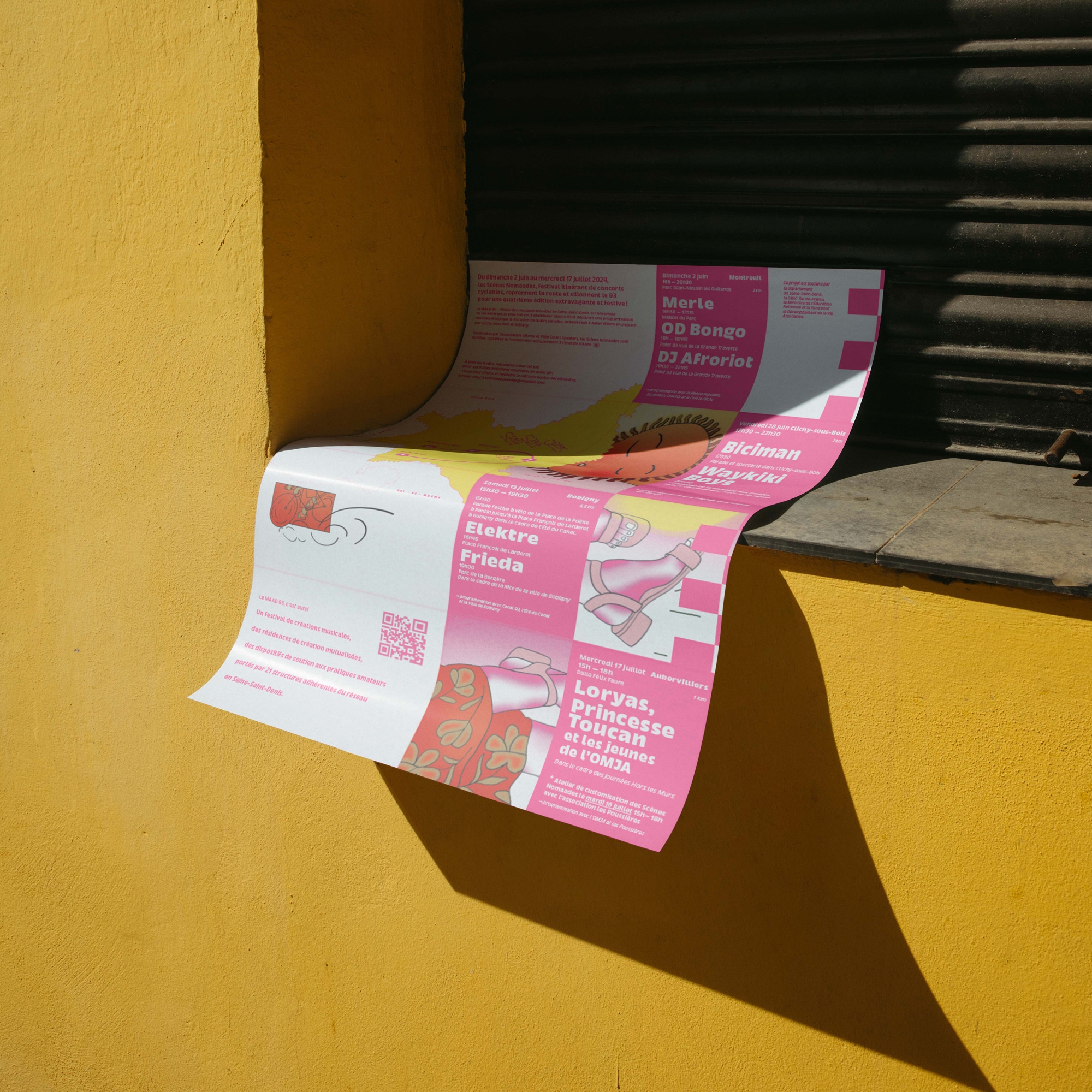 Graphic designer Gaëlle Correa used exclusively Dina Chaumont Display and Dina Chaumont Text. The illustrations evoke the conviviality of the festival and its powerful (solar) energy!