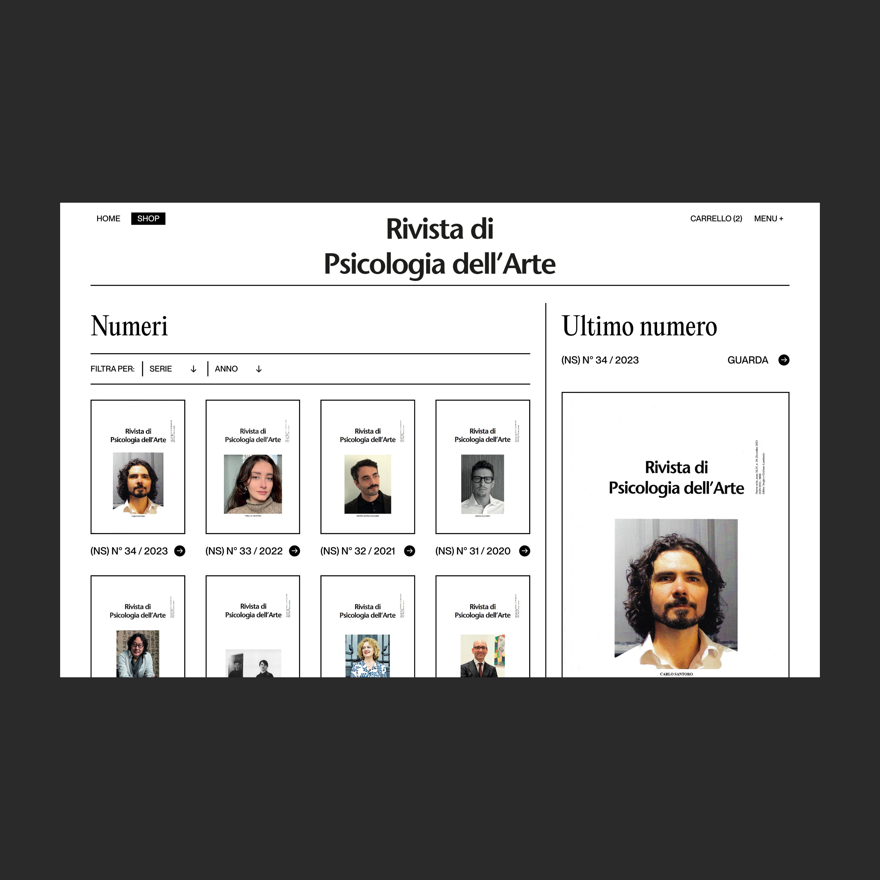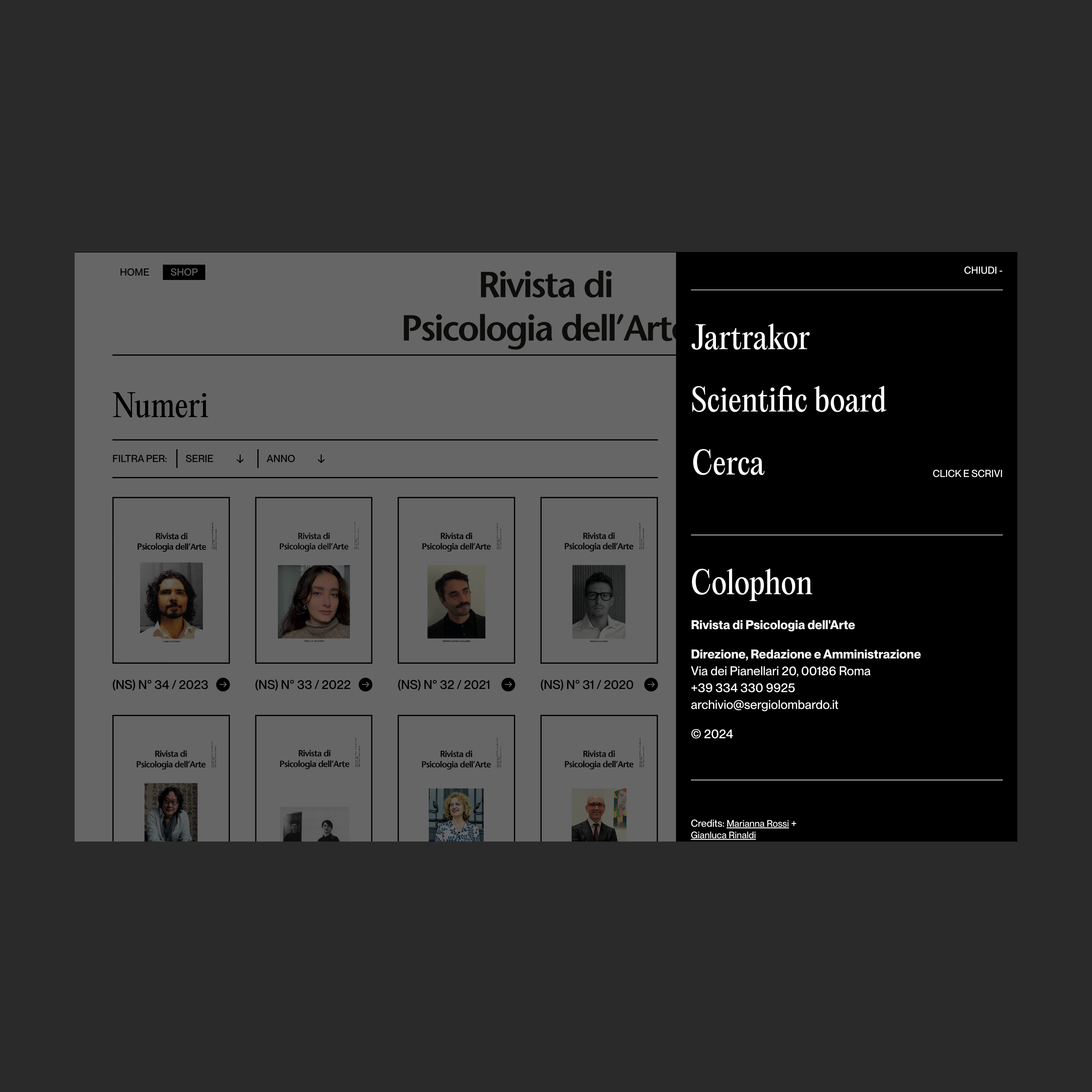 UX-UI design and development by Gianluca Rinaldi, with creative direction by Marianna Rossi. The fonts in use are Neue Montreal and Editorial New by Pangram Pangram. The magazine logo (not part of the website launch) uses ITC Stone Sans.