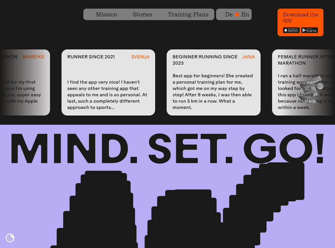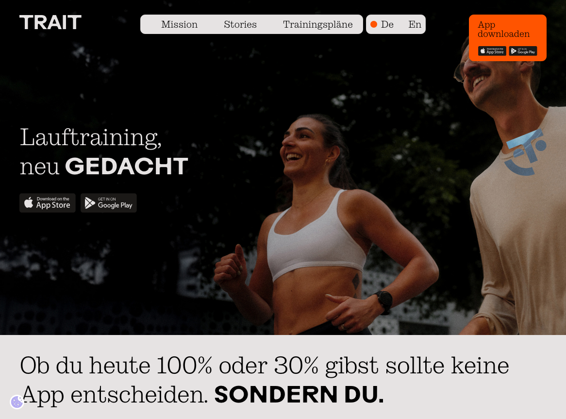 Stringer by Order Type Foundry and Rauschen B (and, to a lesser extent, A) by Out of the Dark are used for the identity of Trait, a Berlin-based running app.