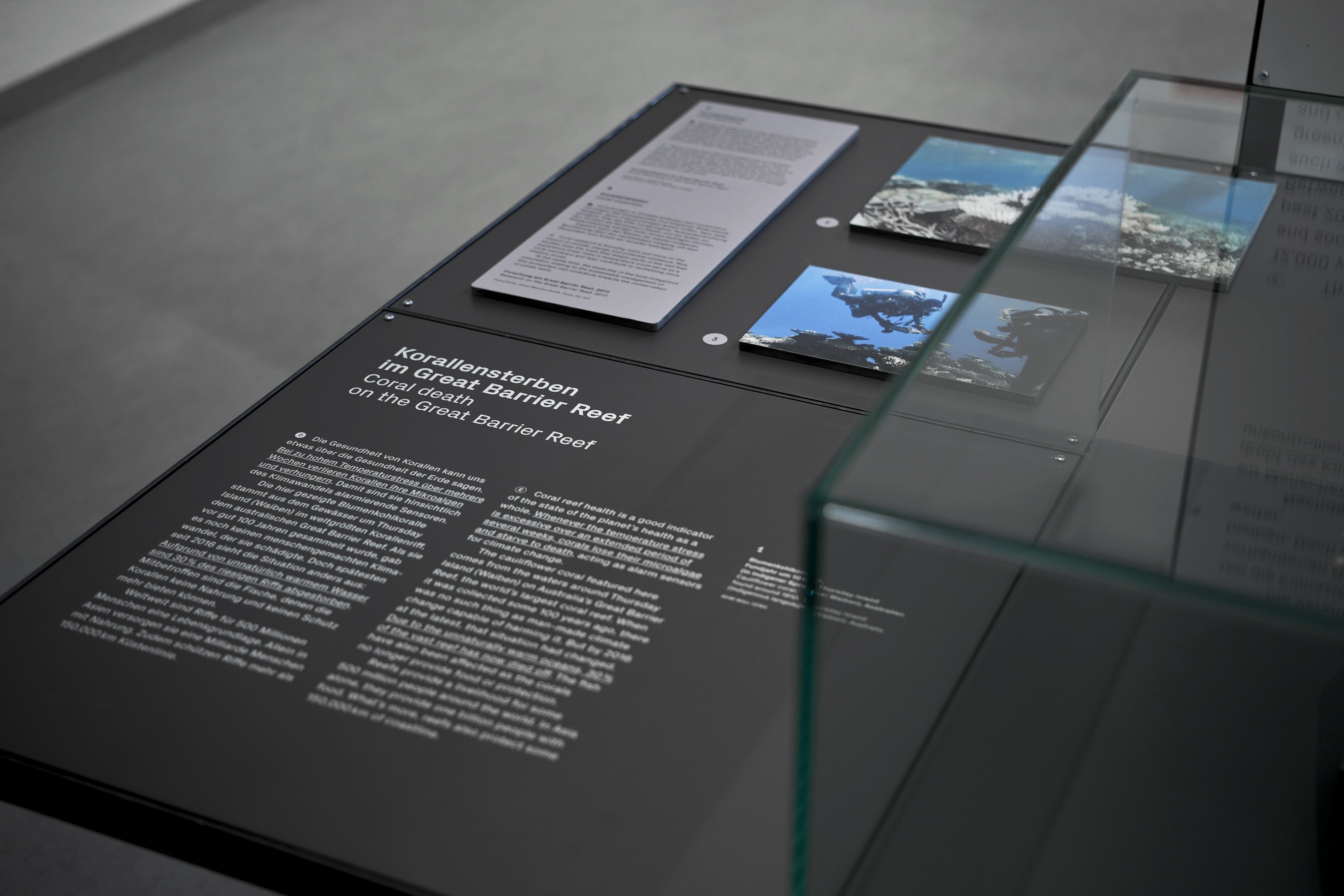Sustainability is not just a key topic but also a fundamental design principle of the exhibition. The concept follows the Reduce. Re-use. Recycle. paradigm, emphasizing the thoughtful use of materials, the elimination of excess and a clear visual language. The selected typefaces play a crucial role in knowledge communication, making complex information accessible and easy to understand.