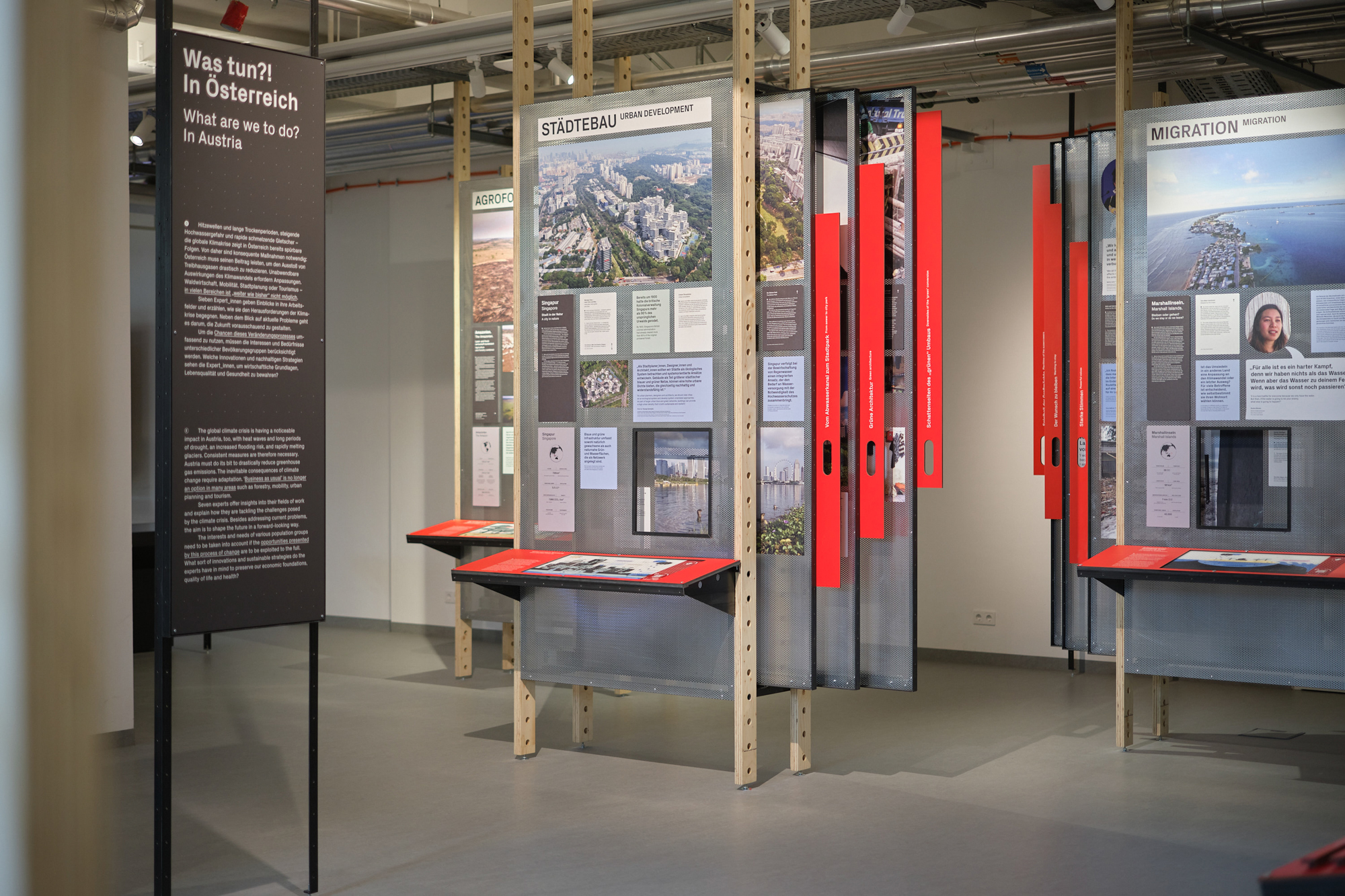 Climate. Knowledge. Action! is a permanent exhibition at the Technisches Museum Wien. It addresses hot topics – literally: climate change and climate crisis as well as their far-reaching consequences. The exhibition explores various perspectives—from resource scarcity to social and technological solutions.