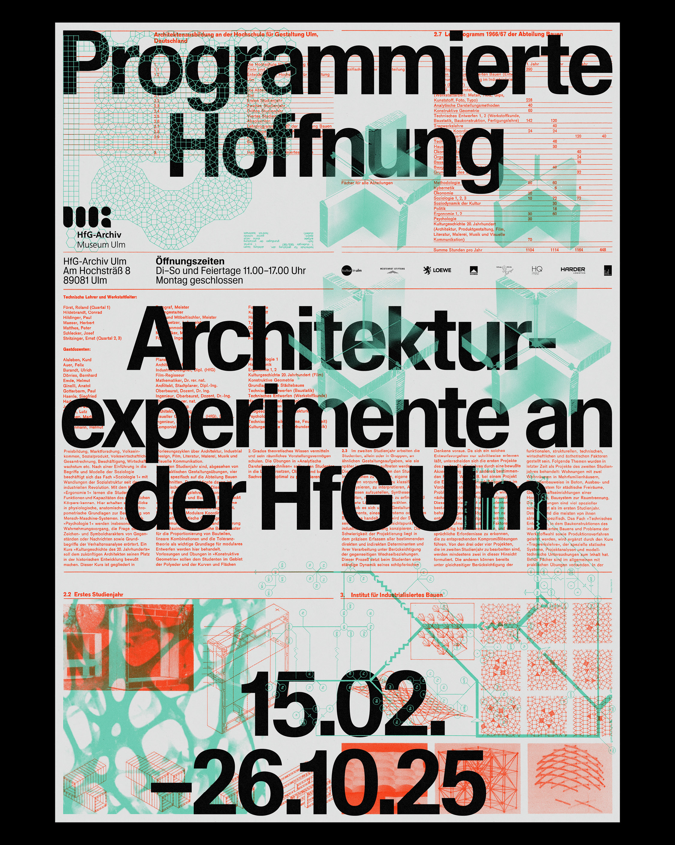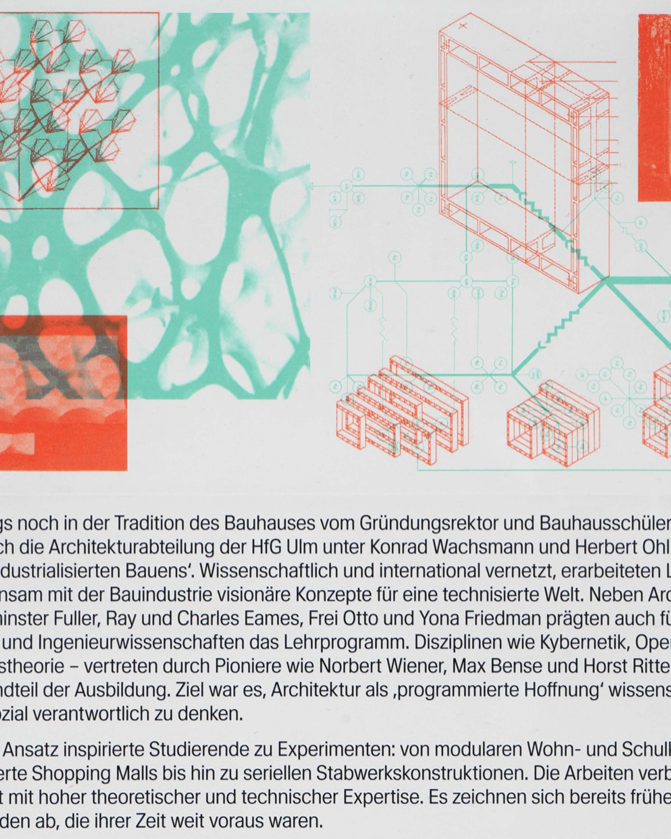 Folder and invitation to the upcoming exhibition Programmierte Hoffnung. Architekturexperimente an der HfG Ulm / Programmed for Hope: Architectural Experiments at the HfG Ulm at HfG-Archiv / Museum Ulm .