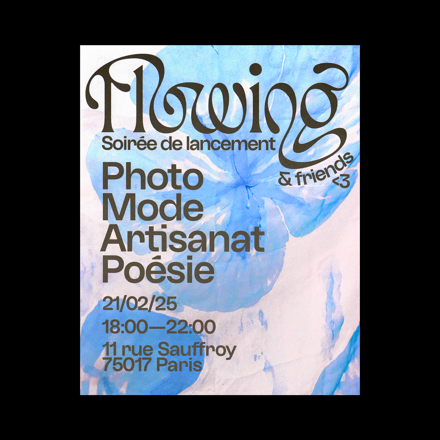 Flowing Contributed by Alexandre Créquer on Mar 25th, 2025. Artwork published in February 2025. Photo: Alexandre Créquer. Flowing. License: All Rights Reserved. I used Sagace for Flowing, a French textile creation studio. The shown flyer was made for a launch event in Paris and features the Medium weight. The logotype is a custom design by me. Photo: Alexandre Créquer. Flowing. License: All Rights Reserved. Source: atelierflowing.com Photo: Alexandre Créquer. Flowing. License: All Rights Reserved. Text on the website is shown in the Regular and Regular Italic styles. Typefaces More about SagaceGet Sagace Formats Web (5523) Posters/Flyers (5652) Topics Event (3147) Fashion/Apparel (1524) Designers/Agencies Alexandre Créquer (6) Tagged withfashion (451)textiles (71)launch events (54)flyers (341)flowers (316)blue (893)logos (4896)lettering (673)French (language) (2477)uses by the typeface’s designer (1243)early uses (2177) Artwork location France (2778) Paris (1294) In Setsreferentes (Ariel Orozco) (6) Post a comment Name Email – will not be published Website Your response Submit Comment More Sagace in use MJC Izeaux 2024–252024Léa GaraitContributed by Alexandre Créquer L!S!B!L!TÉ2022Alexandre CréquerContributed by Alexandre Créquer Morescope2024Kåre M SolvågContributed by Alexandre Créquer Sponsor More in Fashion/Apparel WWF Market2021Reflect StudioContributed by Nouvelle Noire Studio Peachy2022Katrin EmeryStudio PeachyContributed by Colin M Ford Best of the Vestsc. 1970Contributed by Nick Sherman 2020 Hindsight T-shirt2020Myles ThompsonContributed by Myles Thompson More in Posters/Flyers Call Girl (2012) film titles, posters, soundtrack cover2012Daniel CarlstenPär WickholmSthlm CreatorsContributed by Florian Hardwig Staff Pick F for Fake film poster1977Donn TretheweyContributed by Herb Lubalin Study Center Poseidon magazine poster (1977) and covers (1978–1983)c. 1977unknownContributed by Florian Hardwig Queenmama Market: YES!2018Wonseop LeeContributed by Wonseop Lee More Fonts In Use EATc. 2013The PlantContributed by Nina Stössinger Staff Pick Identités du transitoire2020Clément Le Tulle-NeyretContributed by Clément Le Tulle-Neyret Staff Pick Seattle Met “Mudroom”, Summer 20122012André MoraChris SkilesContributed by Stephen Coles Staff Pick Pye2020CI StudioContributed by 205TF Staff Pick