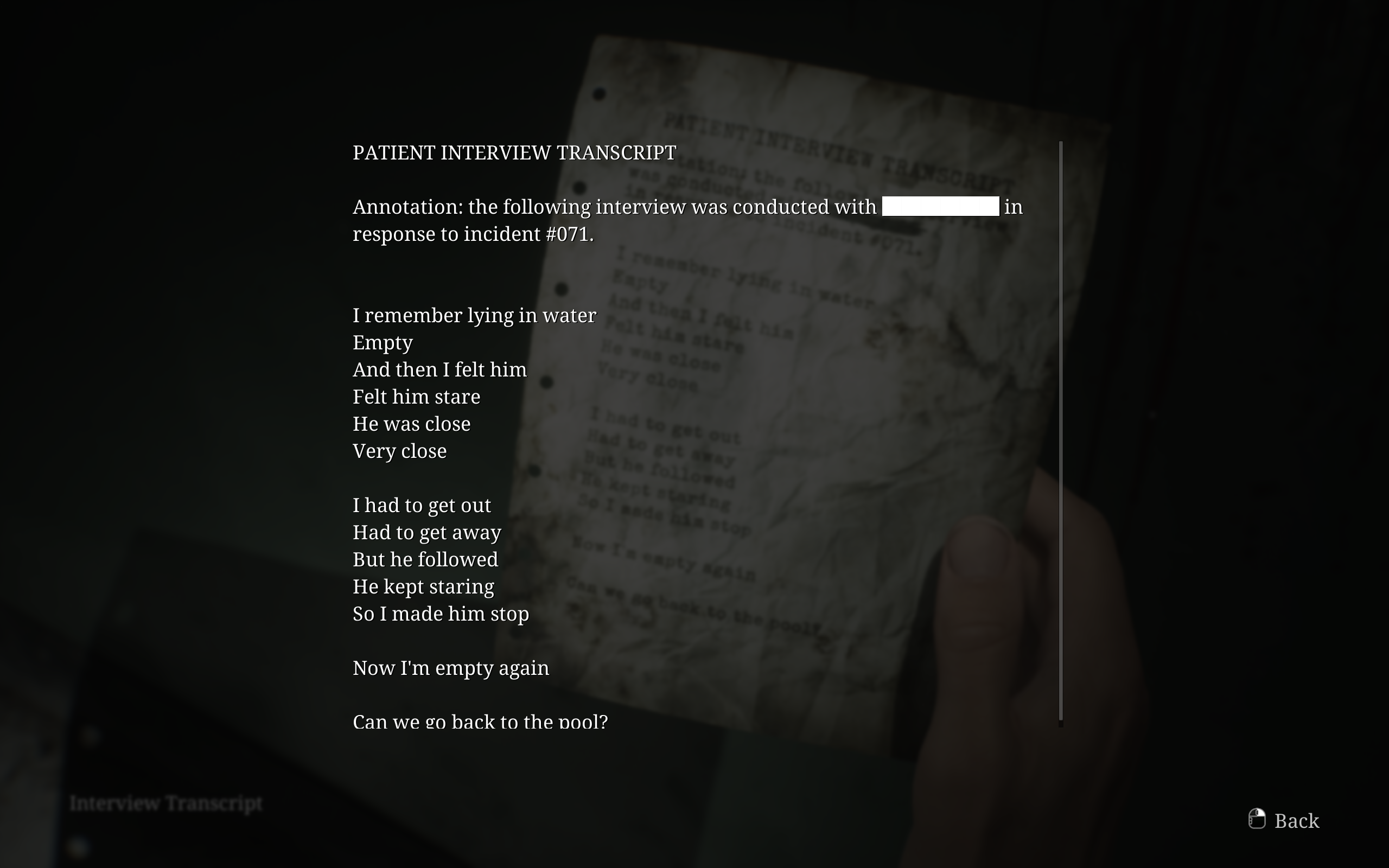 Silent Hill 2 Remake is a 2024 survival horror game and a remake of the 2001 classic, developed by Bloober Team and published by Konami on October 8th 2024. It follows James Sunderland as he returns to the town of Silent Hill after receiving a letter from his deceased wife, Mary, who claims to be there waiting for him.