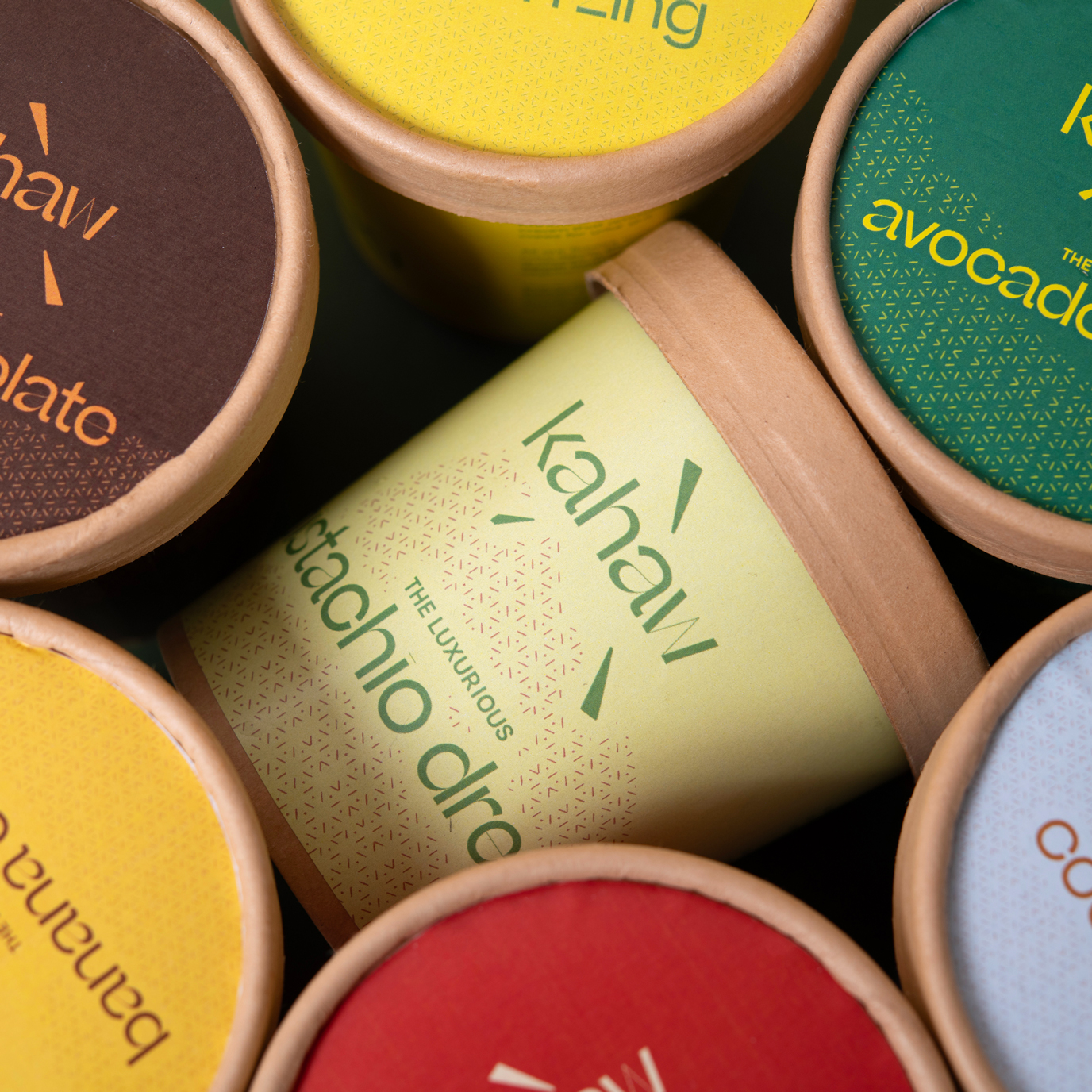 To design and create Kahaw Gelato’s identity, we brought flavors to life, imagining them as characters with distinct personalities. “Strawberry Fizz” is bright, “Tiramisu Magic” is alluring, “Dark Chocolate” is seductive – each flavor crafted to feel friendly and relatable, sparking connections and smiles.