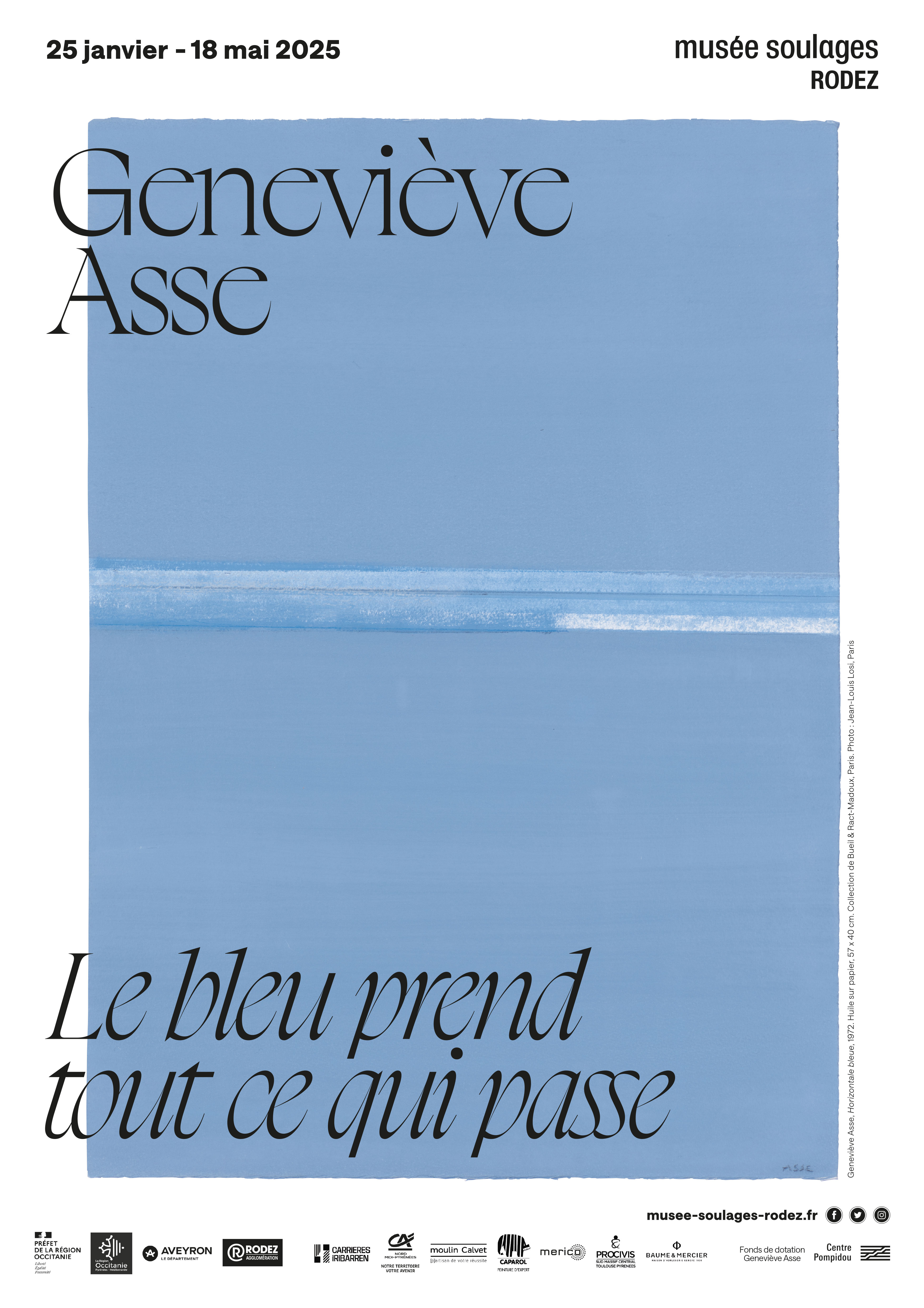 Geneviève Asse: Le Bleu prend tout ce qui passe (“Geneviève Asse: Blue takes everything that comes along”) is an exhibition at the Soulages Museum in Rodez, France, from January 25 to May 18, 2025.