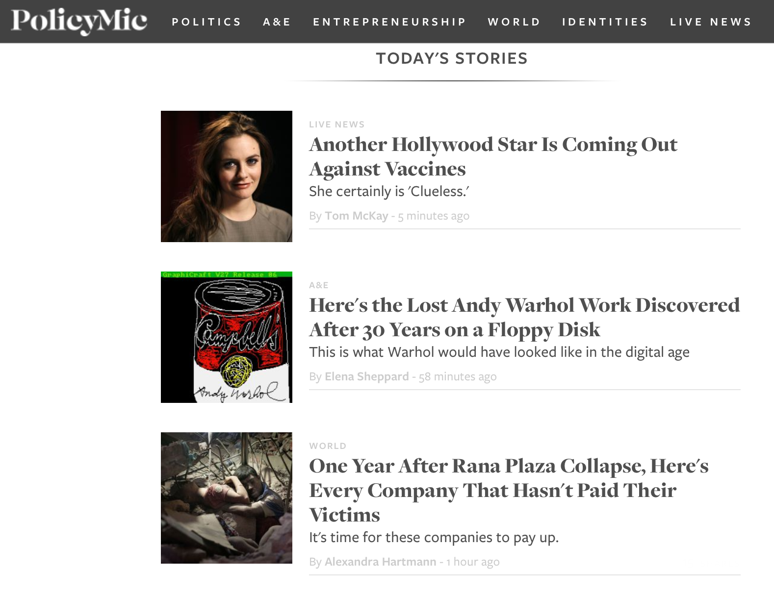 PolicyMic website Contributed by Caren Litherland on Apr 25th, 2014. Artwork published in 2014. Source: policymic.com PolicyMic. License: All Rights Reserved. Source: policymic.com License: All Rights Reserved. Source: policymic.com License: All Rights Reserved. Typefaces More about Freight Display & BigGet Freight Display & BigMore about Freight SansGet Freight Sans Formats Web (5659) Topics News (554) Politics (859) Designers/Agencies Liran Okanon (1) Tagged witheditorial design (608)news (13)webfonts (449) Artwork location United States (9977) New York City (2941) Post a comment Name Email – will not be published Website Your response Submit Comment More Freight Display & Big in use The Blackpepper Studio (TBP) websitec. 2022The Blackpepper Studio (TBP)Contributed by The Blackpepper Studio (TBP) Staff Pick Boat Magazine Website2014Extract StudioDavey SpensContributed by Stephen Coles Staff Pick Courrier International2010Mark PorterContributed by Stephen Coles Blog Sponsor More in Politics Liebe zum Ort – Zukunftsgerechte Städte by Joël Luc Cachelinc. 2024Büro SequenzContributed by HAL Typefaces Staff Pick Yes / I’m voting No2014unknownContributed by Matthijs Sluiter Hillary Clinton campaign plane “Stronger Together”2016PentagramMichael BierutJesse ReedContributed by Axl Gamez González The Sugar and the Hunger by Robert Linhart2023Ott KagovereContributed by Tüpokompanii More in Web Mouthwash Studio branding2021Mouthwash StudioContributed by Mackenzie Freemire Resonate: Thinking Sound and Space2018Studio NajbrtContributed by Extraktem Creative Capital identity2019CHIPSContributed by Production Type RBC2017RBC teamContributed by Yury Ostromentsky More Fonts In Use Seattle Met, September 20122012André MoraContributed by Stephen Coles Staff Pick The Flood / Die Ausschreitung / Le Débordement by Clay A.D.c. 2022Pierre TandilleAéro ClubContributed by Aéro Club Staff Pick New York City Opera (2009–2013)c. 20082x4incContributed by Labor & Wait Staff Pick Hellfire Restaurant2023CI StudioContributed by Anastasia Balashova (Contrast Foundry) Staff Pick