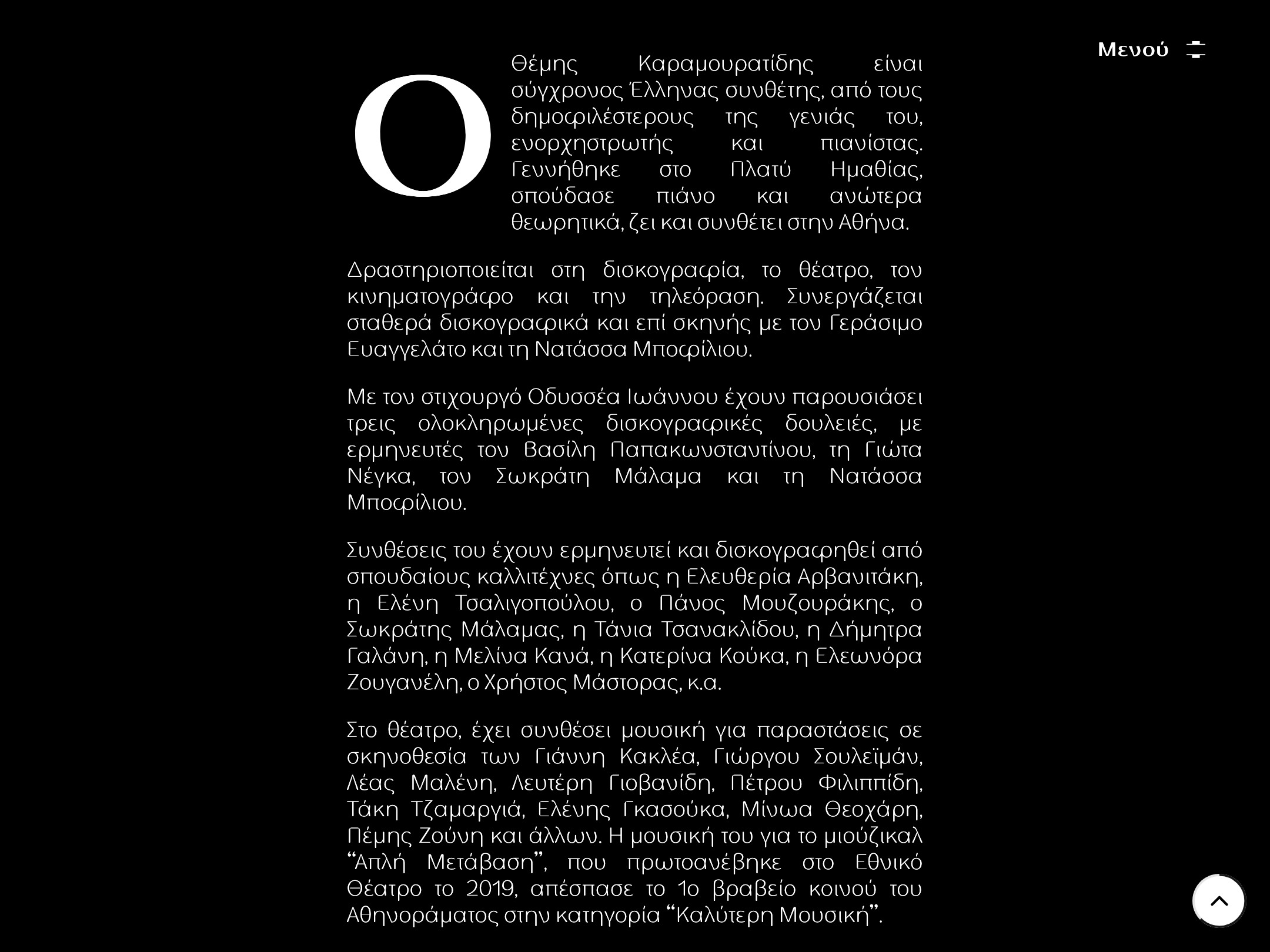 Themis Karamuratides (Θέμης Καραμουρατίδης) is a Greek composer, arranger, and pianist. Cut Design Studio created his portfolio website, using the Medium and Extra Light styles of TA Modern Times throughout, with the logo based on the Medium weight.