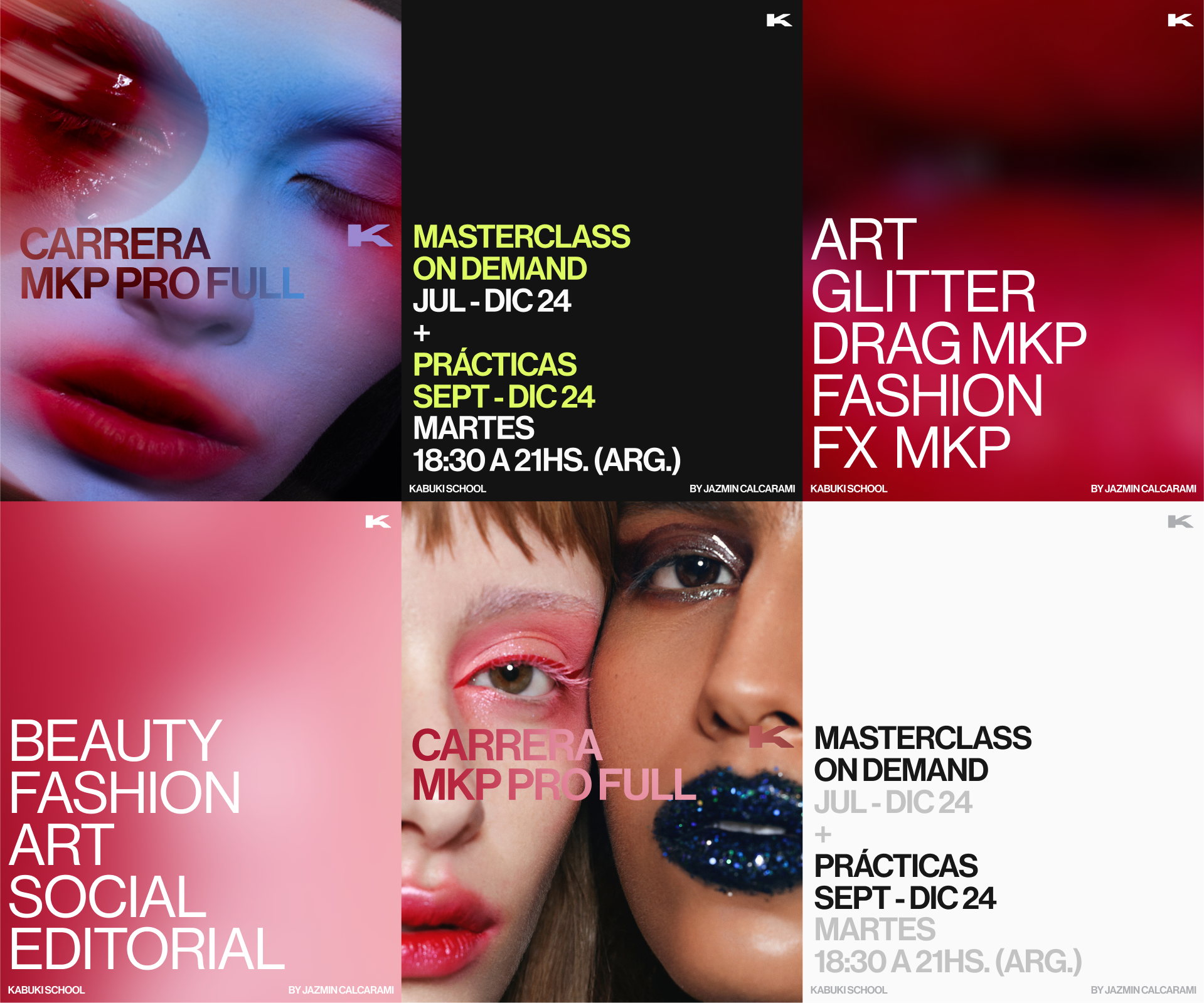 Kabuki Makeup School stands as the only Latin American institution that seamlessly blends art, fashion, and beauty into its educational approach. As the school transitioned from live classes to a digital-first, on-demand platform, it required a bold, editorial-inspired visual identity to reflect this new era.