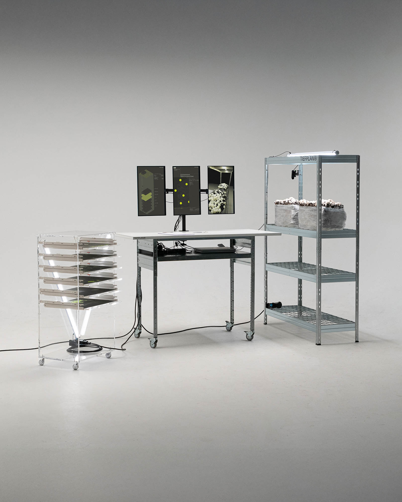 The (fictional) planning office TIEFPLAN develops subterranean living as a response to global challenges. With a focus on the crises and issues of our time, plans and simulations for underground living spaces are designed. Model experiments are used to test and analyze various implementation approaches.