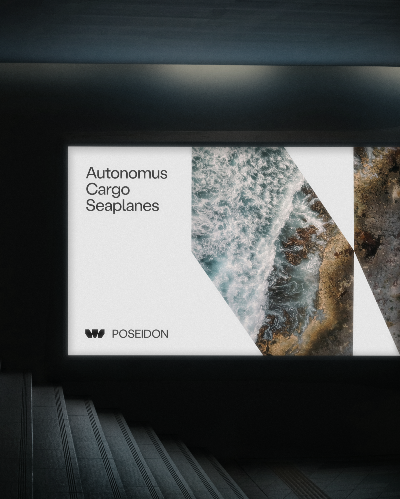Poseidon Aerospace is bringing a cargo revolution to the open waters by developing autonomous cargo seaplanes. I, Piotr Stala of design studio Stala, chose to invest heavily in Stabil Grotesk by the foundry Kometa.xyz for the logo and the body text, because its modern twist and clean design helped to elevate the logo mark and the branding. In fact it grew to a very important part of the brand identity, so much so that no other font was included, to put the emphasis on Stabil Grotesk.