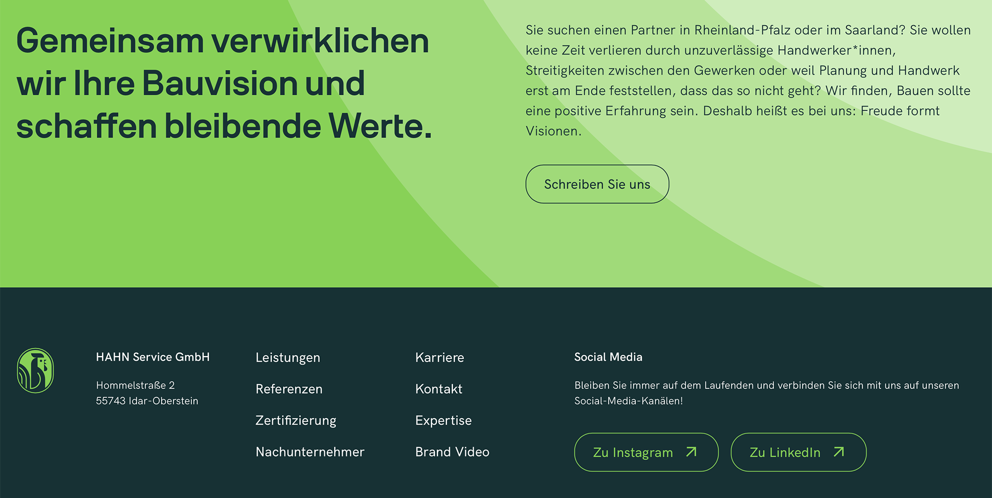 HAHN idenity and website Contributed by Radmir on May 6th, 2025. Artwork published in 2024. Source: www.hahn-bau-gruppe.de License: All Rights Reserved. HAHN is a construction company in Idar-Oberstein, Germany. Their visual identity pairs Volksans with HK Grotesk. Source: www.hahn-bau-gruppe.de License: All Rights Reserved. Source: www.hahn-bau-gruppe.de License: All Rights Reserved. Source: www.hahn-bau-gruppe.de License: All Rights Reserved. Source: www.hahn-bau-gruppe.de License: All Rights Reserved. Source: www.hahn-bau-gruppe.de License: All Rights Reserved. Source: www.hahn-bau-gruppe.de License: All Rights Reserved. Source: www.hahn-bau-gruppe.de License: All Rights Reserved. Source: www.hahn-bau-gruppe.de License: All Rights Reserved. Typefaces More about VolksansGet VolksansMore about HK GroteskGet HK Grotesk Formats Web (5559) Branding/Identity (8353) Topics Architecture (1395) Designers/Agencies Crolla Lowis (1) Tagged withconstruction (70)identities (2311)typeface combinations (3888)similar typefaces (416)all caps (7495)German (language) (2482)green (775)slogans/claims (195)logos (4926)roosters (31) Artwork location Germany (3831) Idar-Oberstein (1) Aachen (13) Post a comment Name Email – will not be published Website Your response Submit Comment More HK Grotesk in use Encoded Symbols, IN Residence monographsc. 2020BRH+Contributed by BRH+ Tonic Site Shop website2023Jen OlmsteadJeff ShipleyContributed by Jan Maack La Houle websiteMarie LécrivainContributed by Alfredo Marco Pradil Sponsor More in Architecture Häger Flemmig Architekten2016Lennart HägerContributed by verena gerlach Terremoto2017Tomo TomoContributed by Luca Pitoni Sombra, La Monumental, BarcelonaPhoto(s) by Frank Grießhammer on Flickr. CSU: project book 2018c. 2018Jaehoon ChoiContributed by Jaehoon Choi More in Web MZ Wallace Website2013Audria BrumbergUnityandFormContributed by Audria Brumberg DIAH websitec. 2019Berliner SüdenContributed by JAF Phrase Health website2020Aly AgoffContributed by Alain Papazian Chronicle of Garage Museum of Contemporary Art2021Pavel KedzichContributed by Pavel Kedzich Staff Pick More Fonts In Use Ideentransfer2010Nina SchütteKatharina GattermanninterpunktionContributed by Katharina Gattermann Staff Pick Les champs sémantiques2020Sophie CureContributed by Production Type Staff Pick Pharmacy labels by Fr. Melsbach, Sobernheimc. 1905MelsbachPhoto(s) by altpapiersammler on Flickr. Staff Pick Reclaiming the City, Reclaiming Words: Póli Gynaikón – City of Womenc. 1982Leonidas ChristakisNiki KonidiContributed by Maria Paganopoulou Blog