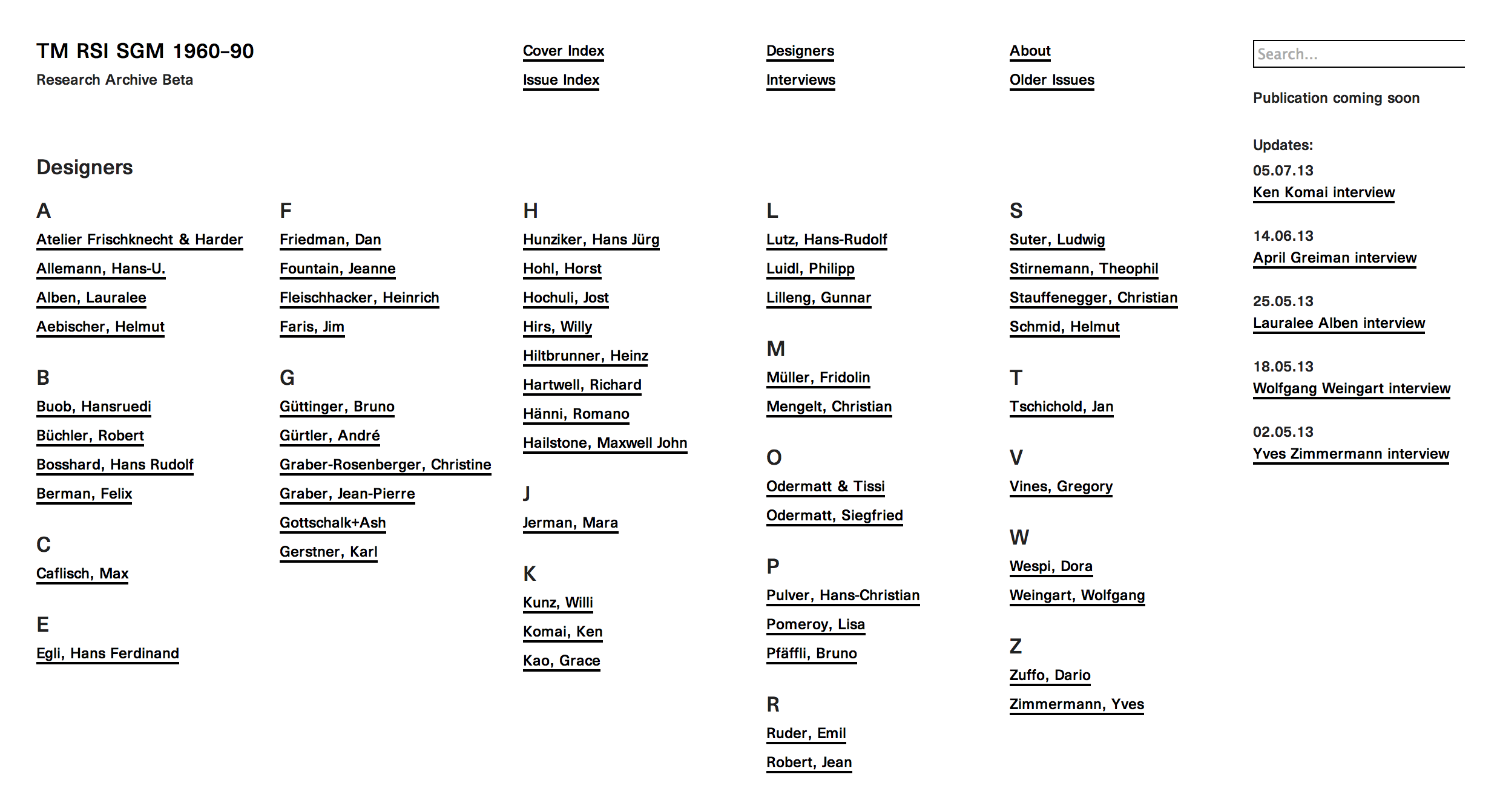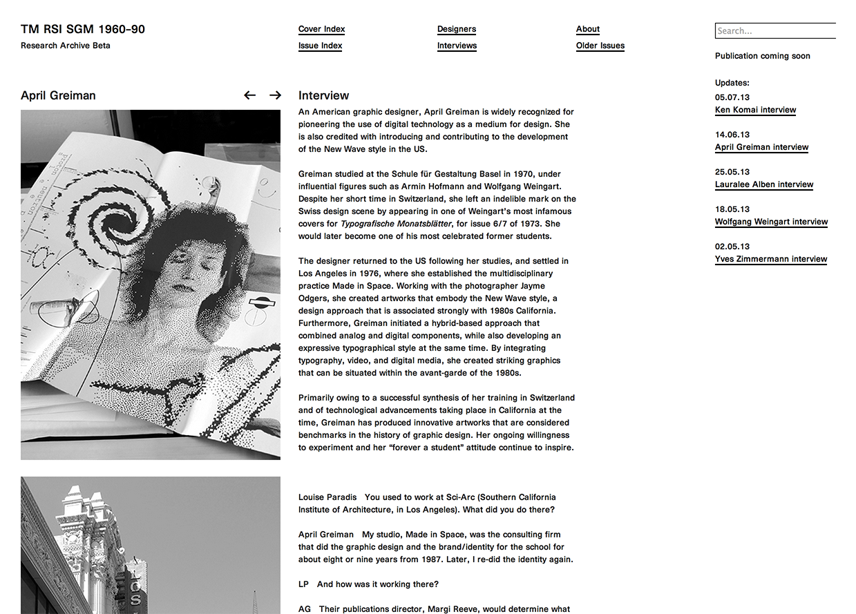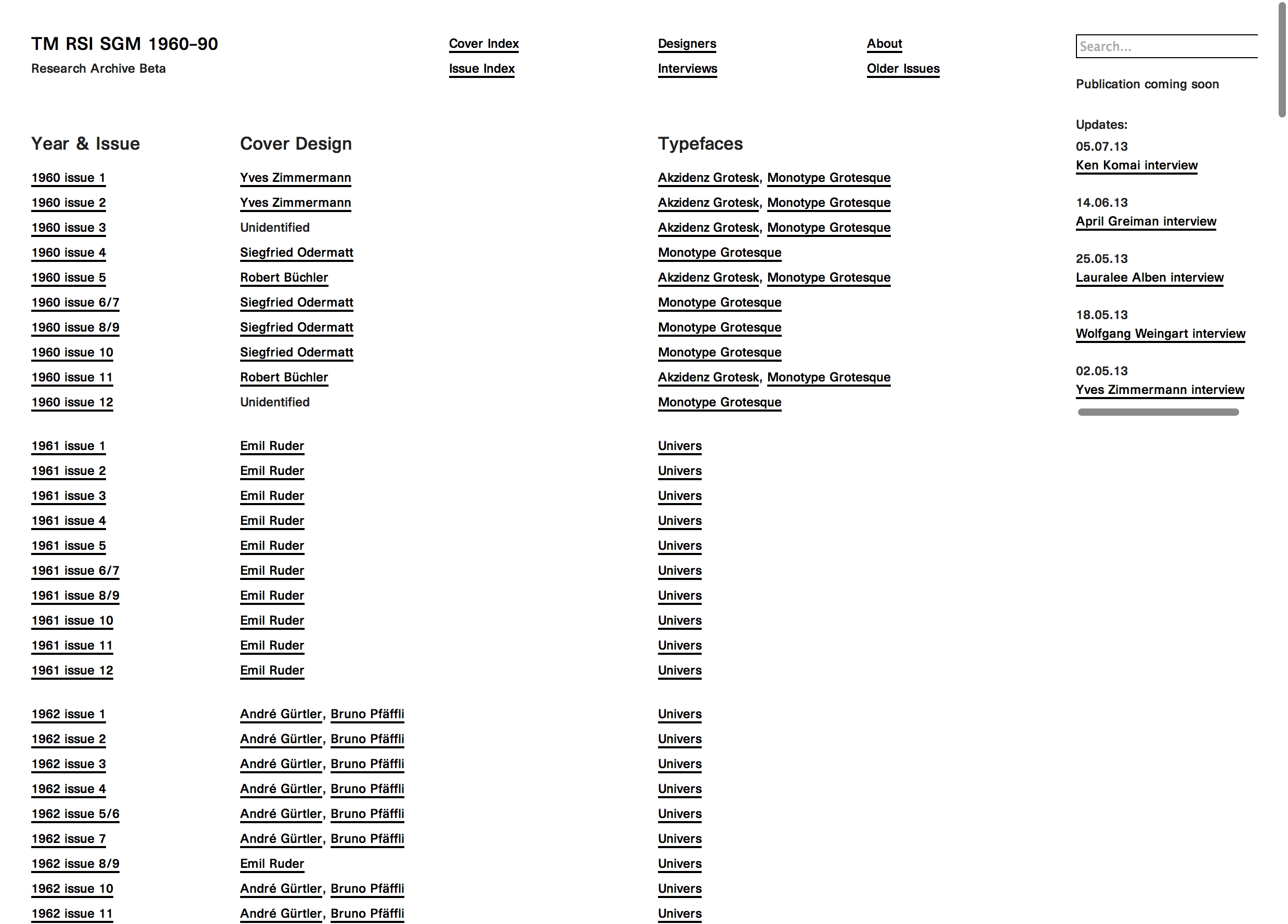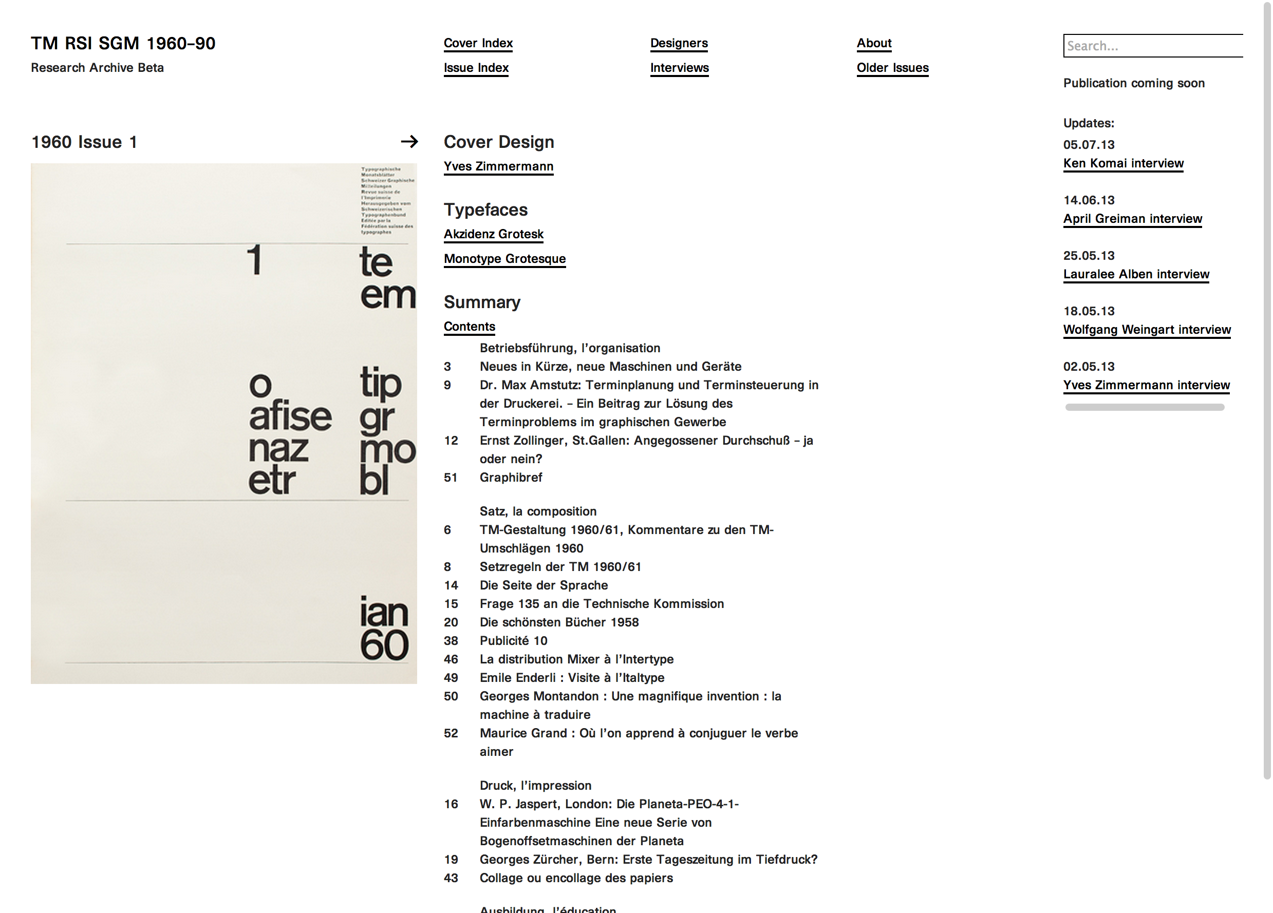 This website is derived from an exhaustive research on the Typographische Monatsblätter (TM) focussing on the issues from 1960 till 1990.