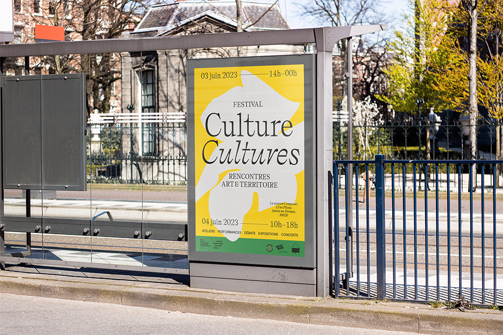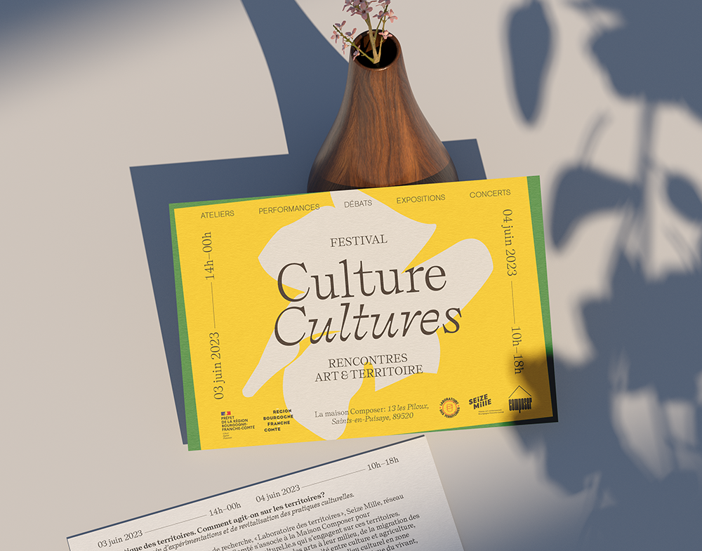 Culture Cultures was a small art festival set in Saints-en-Puisaye in Bourgogne Franche-Comté in June 2023. Its main purpose was to explore art practices in rural areas and what comes out of it, through workshops, performances, exhibitions and concerts. The event communication was designed using Self Modern and Cosmica.