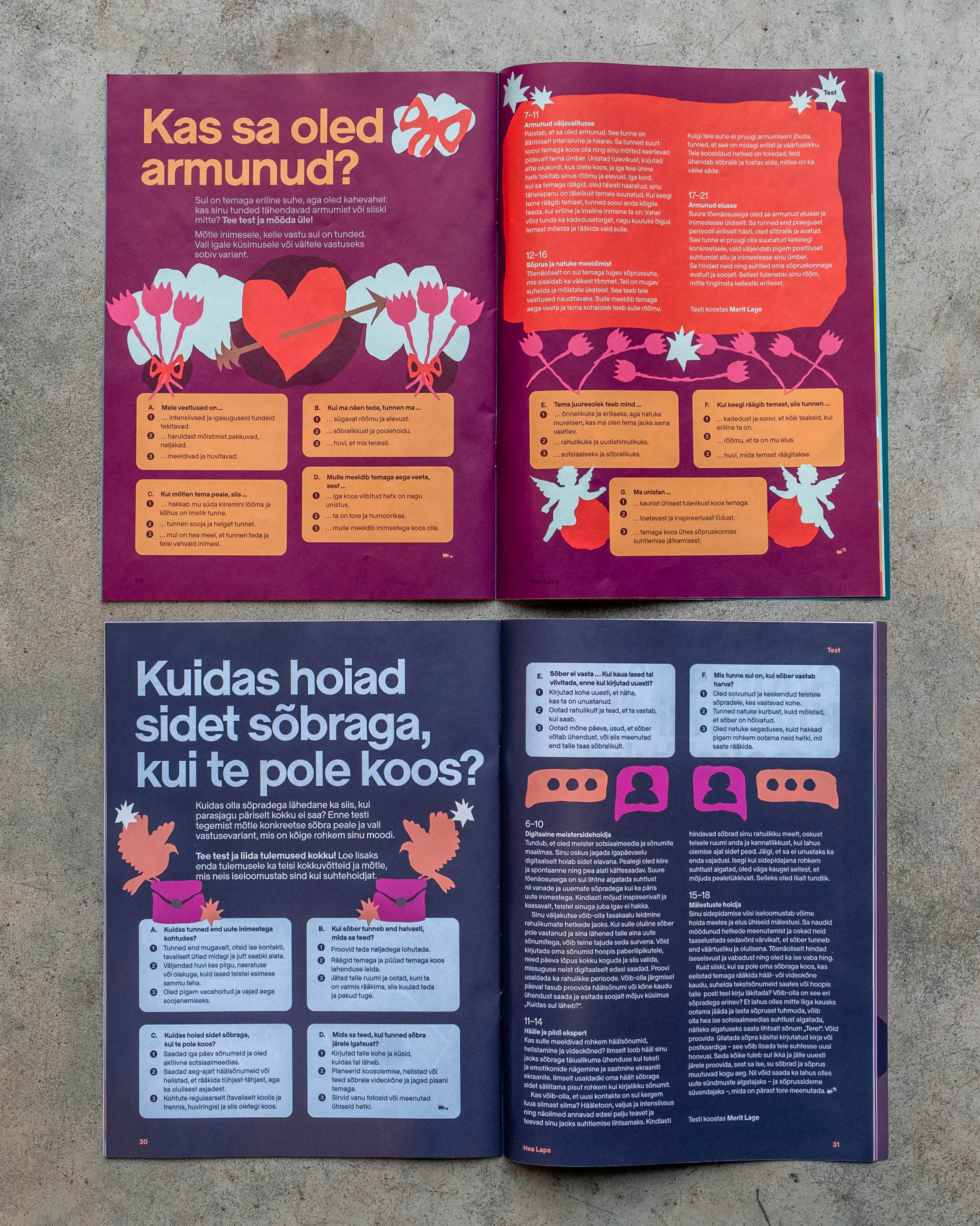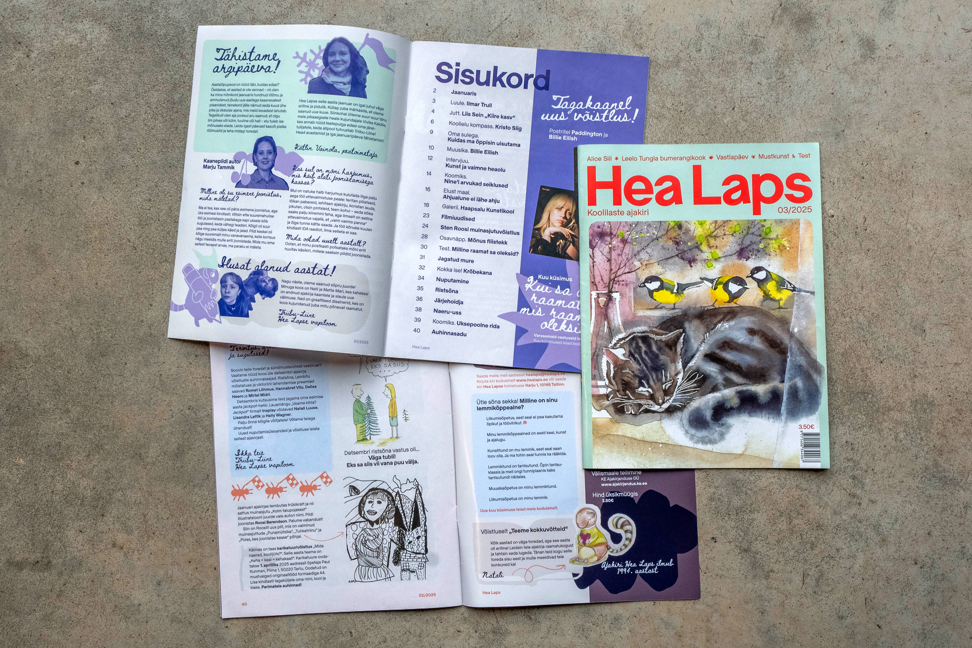 Hea Laps (“Good Kid”) is an Estonian monthly magazine for school-age children that began publication in 1994 under the leadership of Leelo Tungal. The magazine contains a lot of educational and exciting reading and activities: works by children and well-known writers, entertaining stories, scientific articles suitable for children, announcements about other children’s activities and much more. The magazine was redesigned in 2025 by Mette Mari Kaljas and Nelli Viisimaa a.k.a. Pumpkin Space.