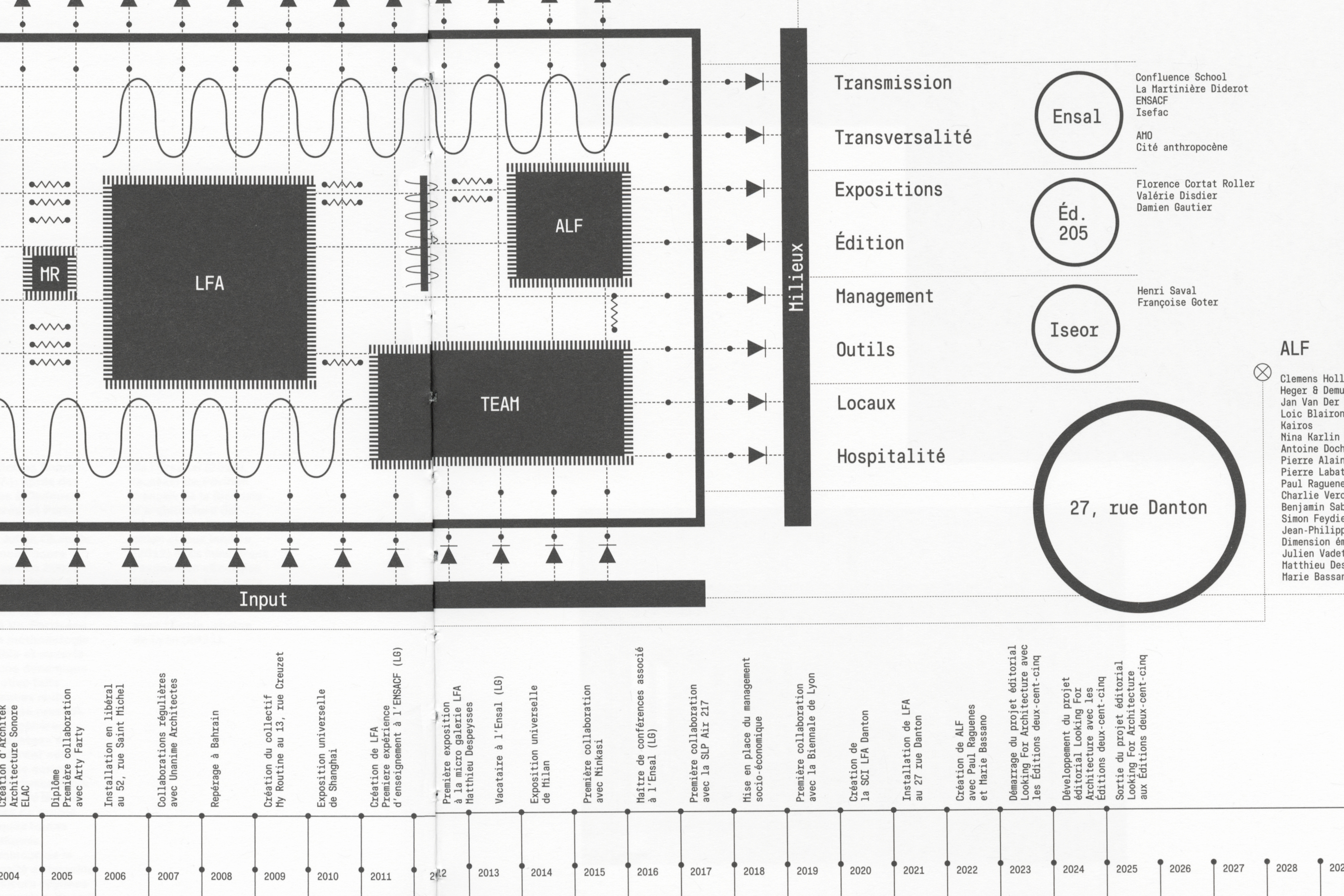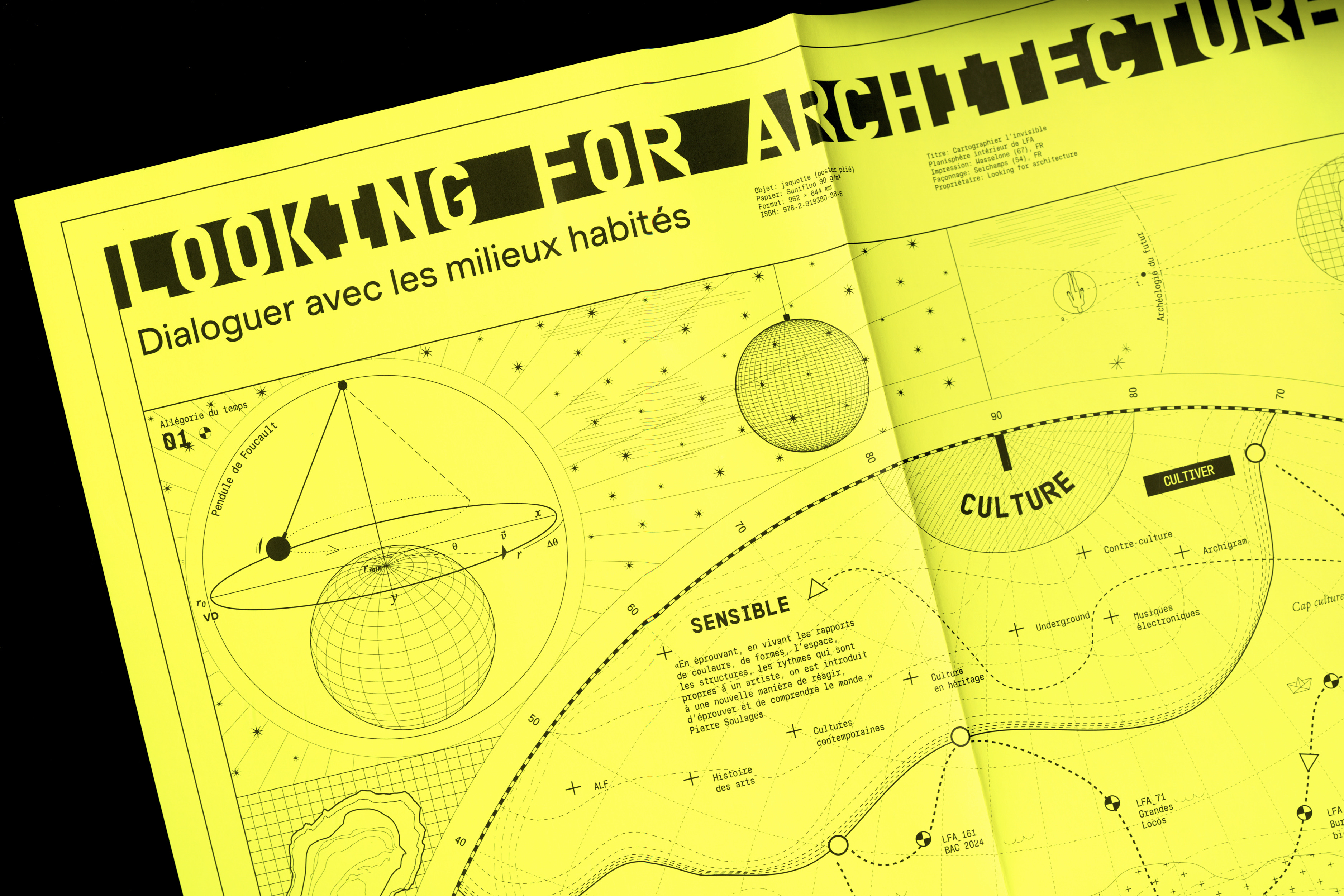 To design this book, Éditions deux-cent-cinq used the typeface Muoto with Muoto Mono, designed by Matthieu Cortat and distributed by 205TF. The title of the book is composed in LFType (also seen on the poster in the first image), a custom typeface designed by Patrick Lallemand and Pierre Delmas (SuperScript²) for LFA’s visual identity in 2012.
