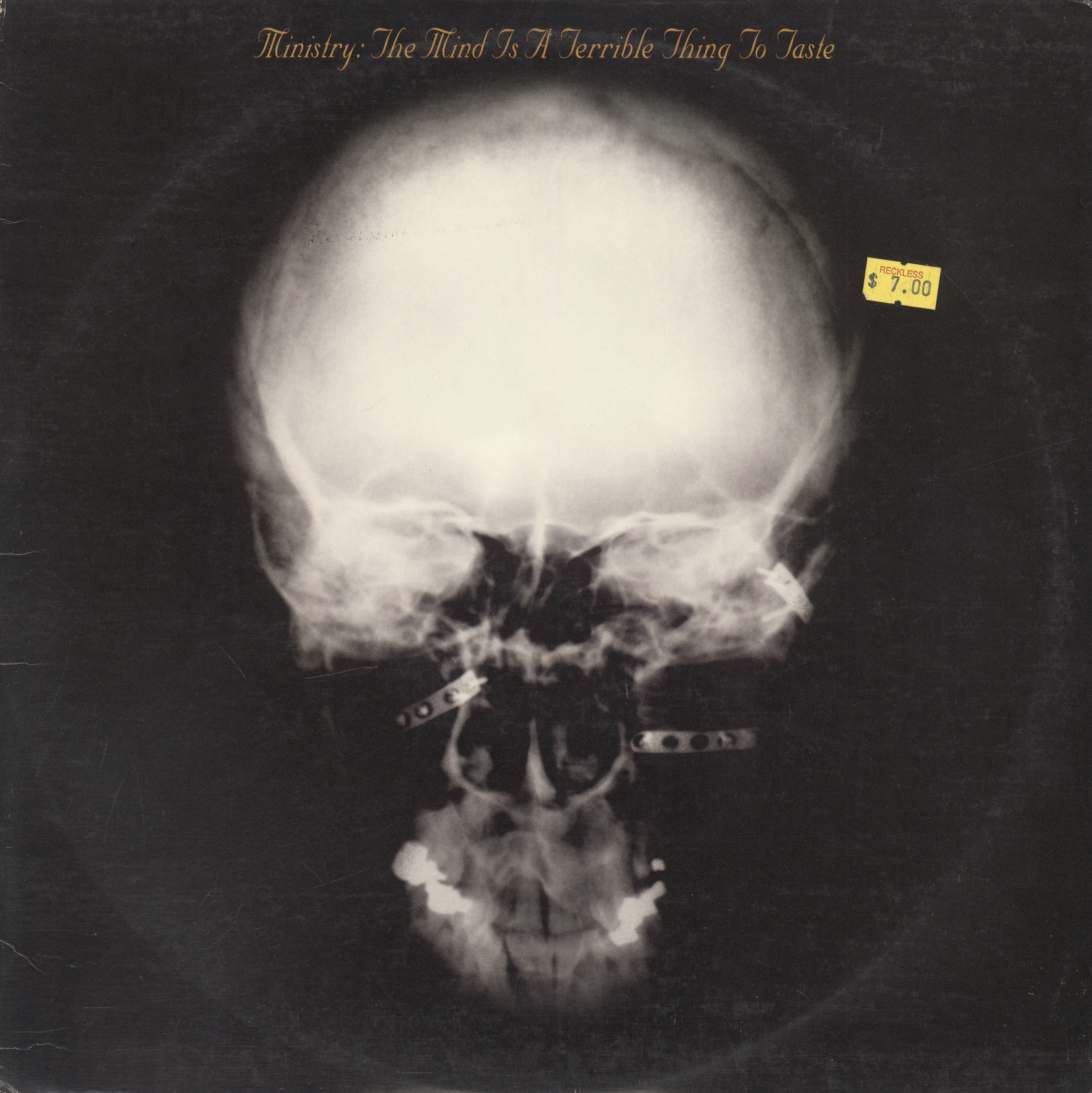 The title of the album is a reference to the UNCF’s slogan, “A mind is a terrible thing to waste”. [Al] Jourgensen was further inspired by the “Just Say No” anti-drug campaign. [Bill] Rieflin said the other band members groaned when they heard it, but Jourgensen had the final say in naming. According to [Chris] Connelly, the album art was inspired by a television program Jourgensen saw where migraine sufferers painted images of their pain. The image itself was a picture of an x-ray from a studio receptionist’s mother, who had been in a car accident and received a metal plate. Jourgensen said he wanted that as the album artwork as soon as he found out about it, but the other band members disliked it. Barker praised the concept but said the execution was poor.