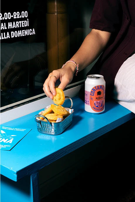 .Maroni by Arthur Calame (Calame.Bureau) is used for Fainà, the first address for Ligurian fast food in Milan. Designer Irene Salvadeo writes: