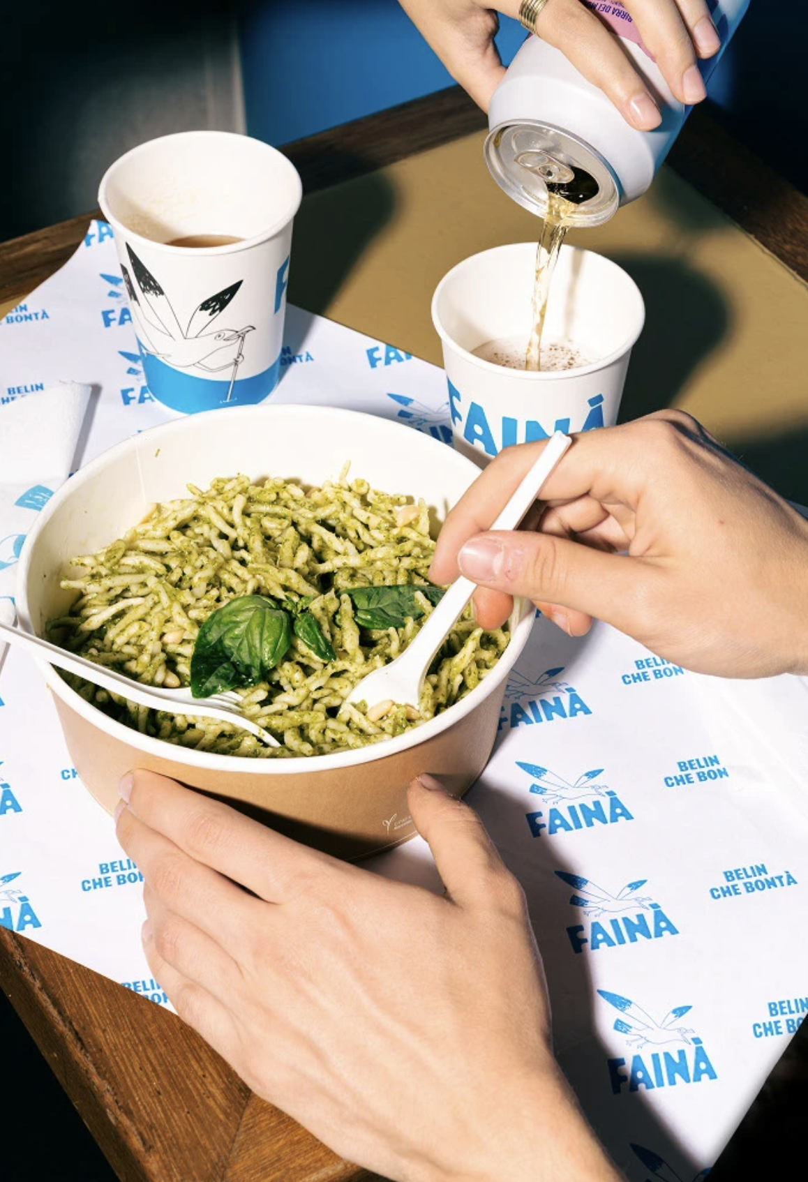The visual world of fainà is anchored by a seagull – a familiar figure along the Ligurian coast, and a nostalgic symbol for anyone who grew up with the sound of waves and wings. Now, it becomes a mascot, bringing a piece of Liguria into the Milanese cityscape.