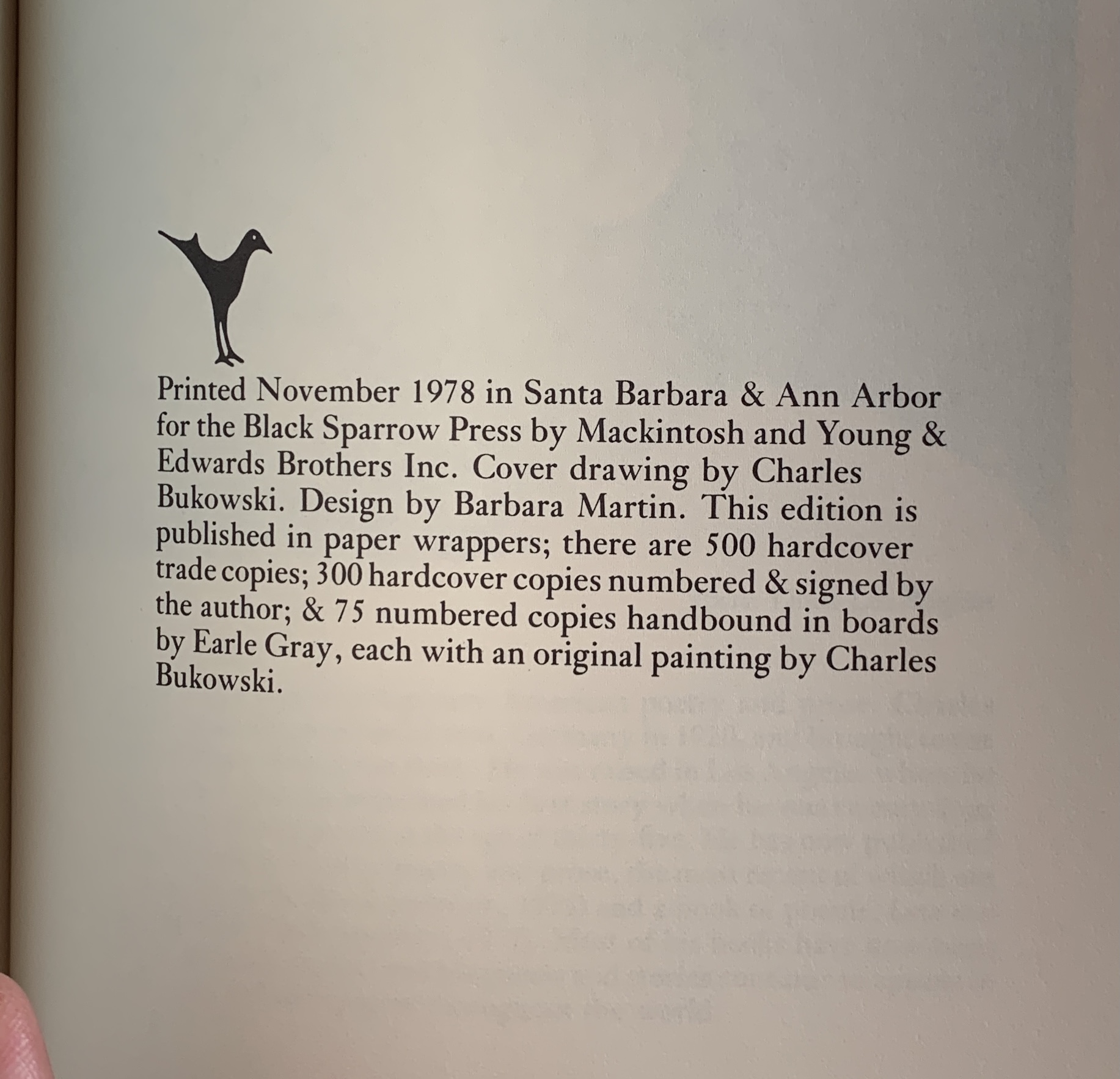 1 Comment on “Women by Charles Bukowski, Black Sparrow Press”