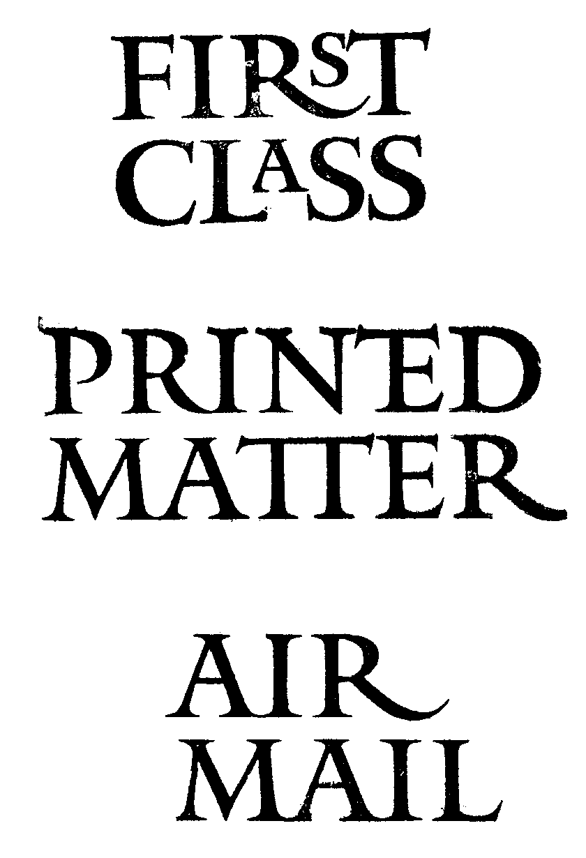 I almost walked right past a package intended for me until, out of the corner of my eye, I noticed a little red stamp. “First Class” it said — only 1" x 1.5" — and unmistakably Mantinia. An envelope from Matthew Carter, surely. Immediately I inquired about its origin; he replied: