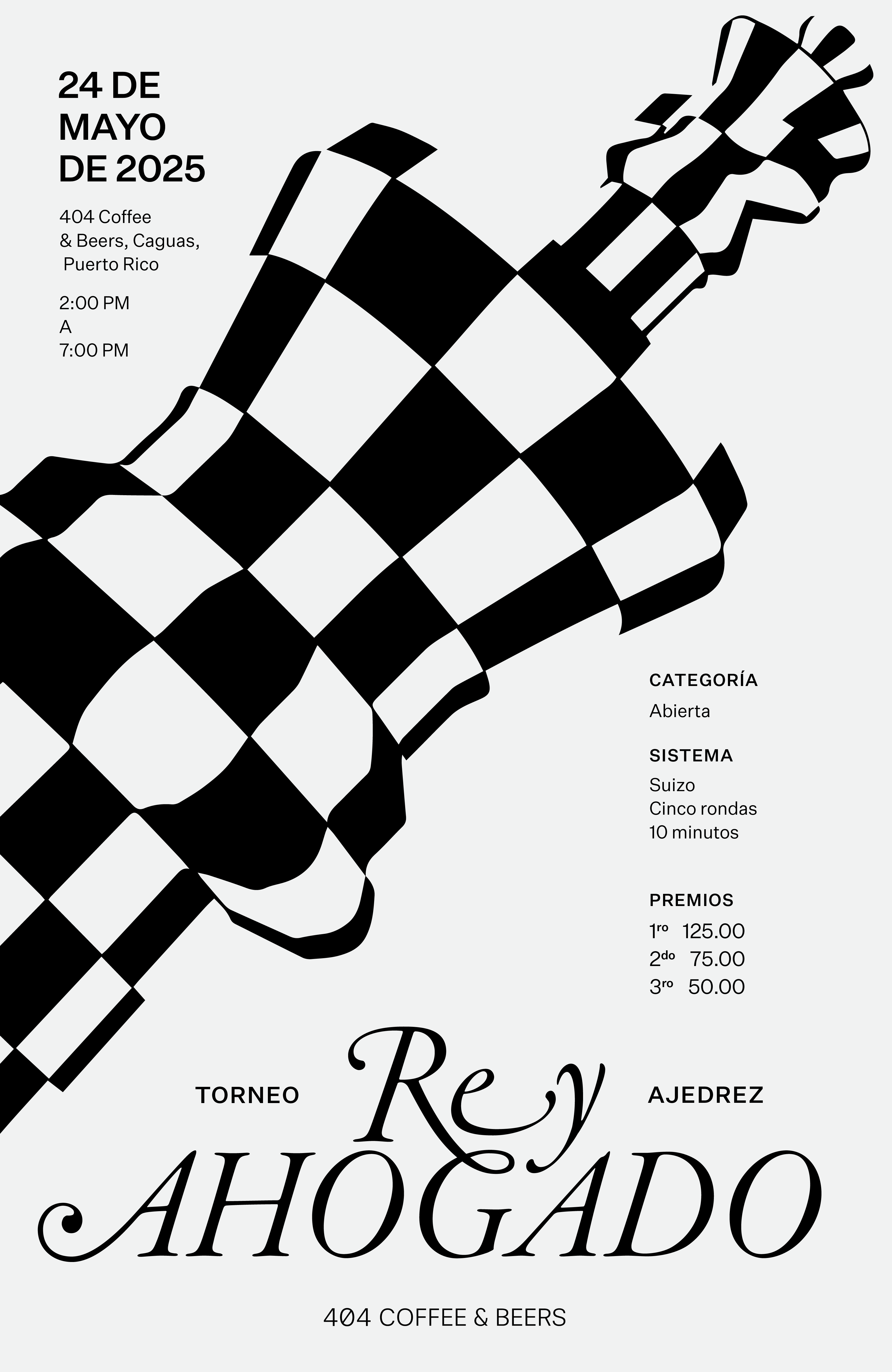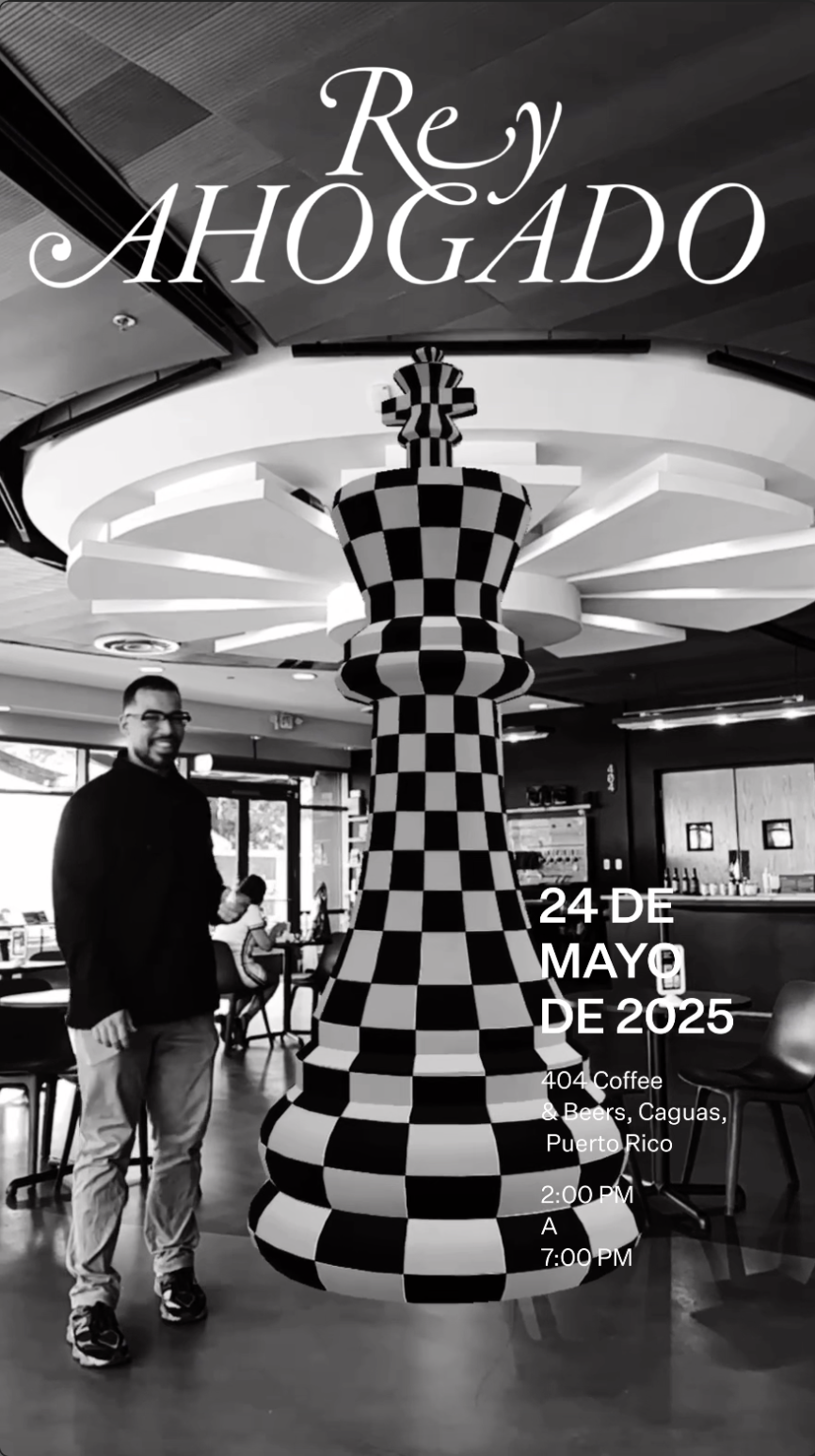 Rey Ahogado is the first chess tournament held at 404 Coffee & Beers as part of the cultural and community programming of the project in Caguas, Puerto Rico. The event followed an open Swiss system format with 10-minute rounds. The project was developed in collaboration with the Centro Criollo de Ciencia y Tecnología del Caribe (C3tec) and the Puerto Rico Chess Federation.