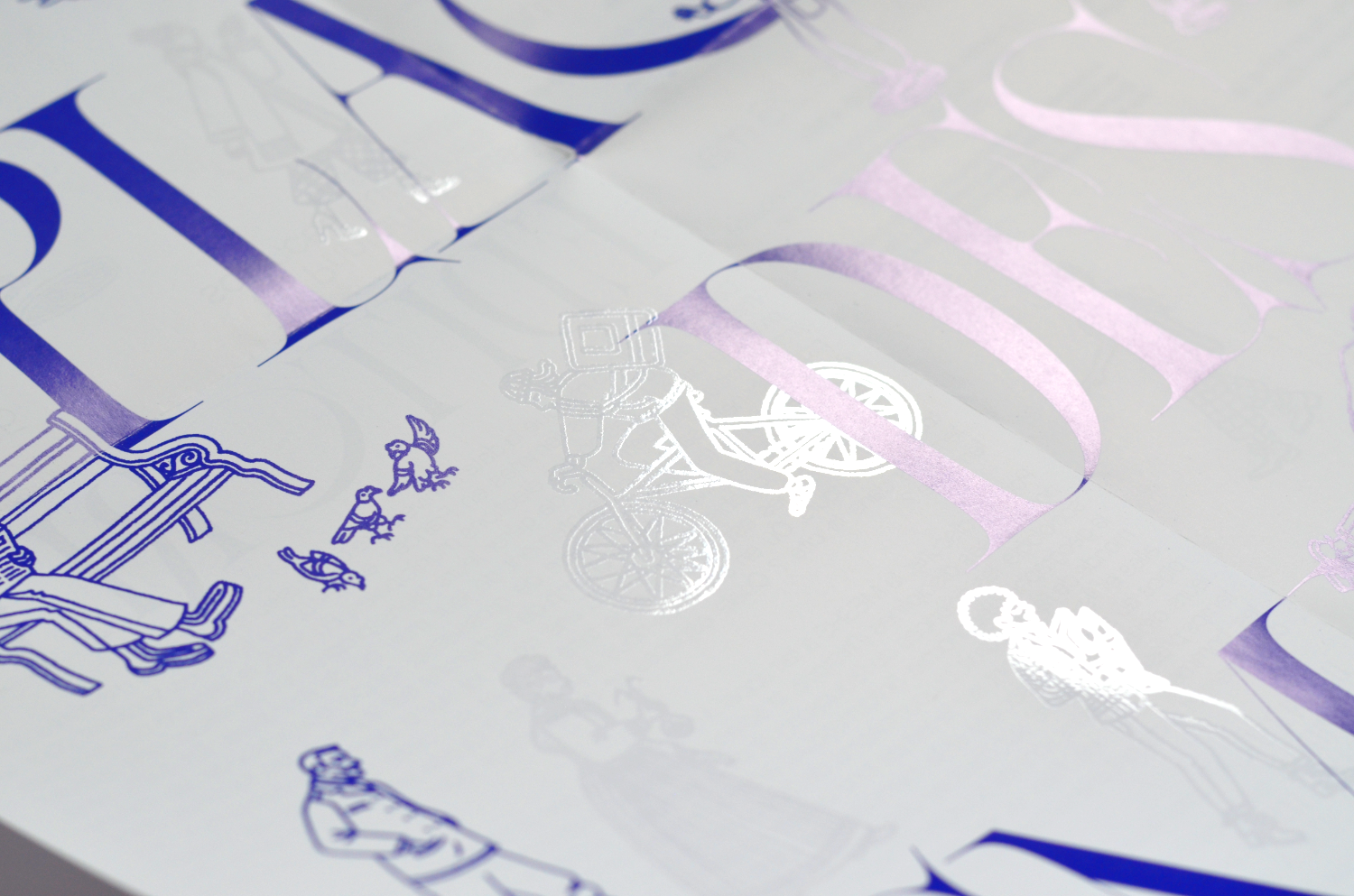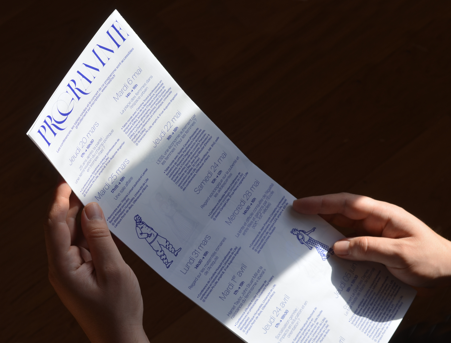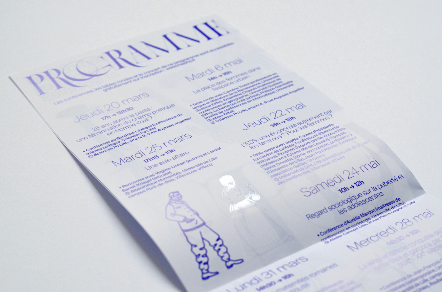 La Place des Femmes (“The Role of Women”) is an event organised by MESHS (Maison européenne des sciences de l’homme et de la société) in the north of France during the “Spring of Human and Social Sciences”. This event features conferences and panel discussions on topics within the human and social sciences. For this edition, the visual questions the invisibility of women in society through a play on transparency, achieved by spot varnish.