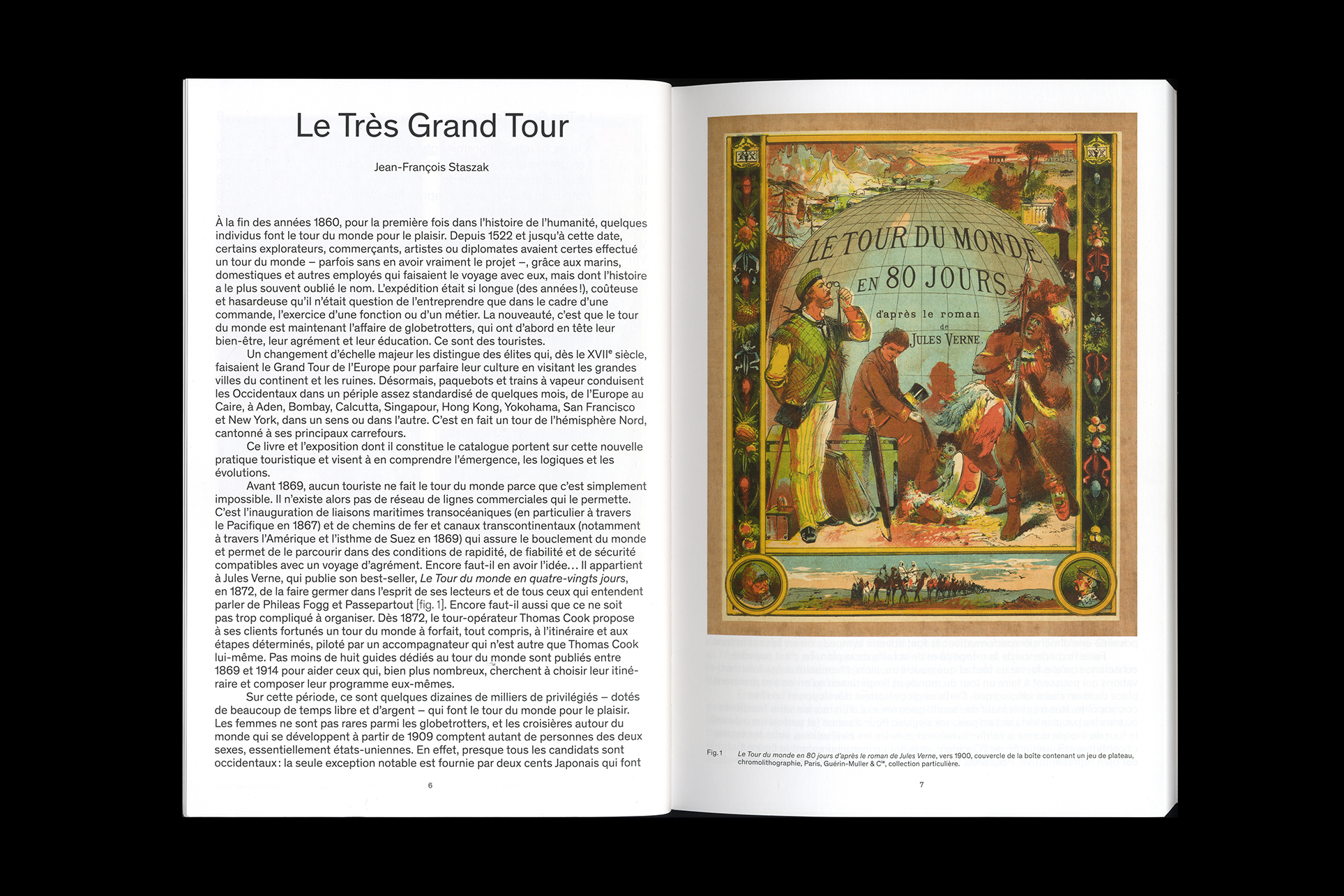 Graphic design and production of the book La manie des tours du monde. De Jules Verne aux premiers globetrotters (“World tour mania. From Jules Verne to the first globetrotters”) for the exhibition Tour du monde. De Jules Verne aux premiers globetrotters, presented at the Château de Prangins – Musée national suisse from April 6 to October 26, 2025, and curated by Raphaël Pieroni and Jean-François Staszak.